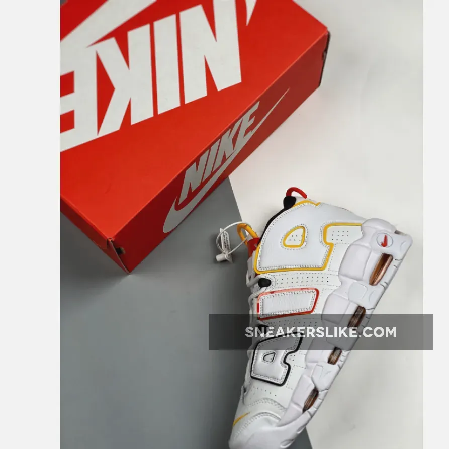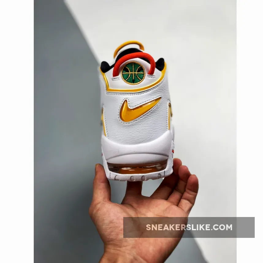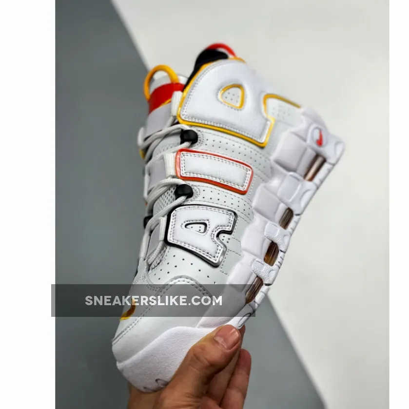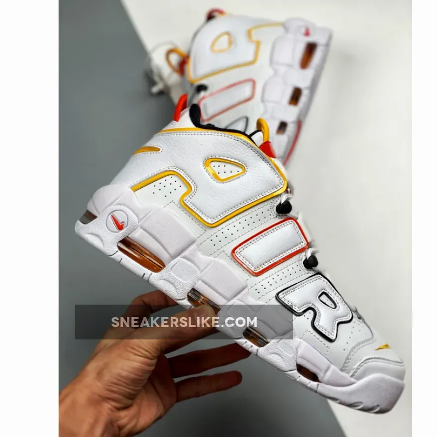 This offering of the Nike Air More Uptempo features a White perforated leather upper paired with Black, Red, and Yellow outlining the oversized “AIR” lettering. Yellow Swooshes continue on the embroidered toe, tongue, and heel with the pack’s signature motif on the upper heels. “RAYGUNS” branded insoles completes the design.