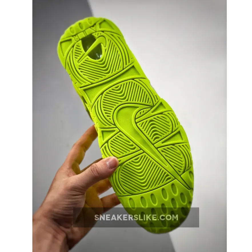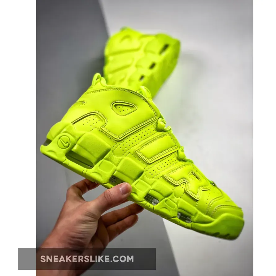 Let’s get loud with the Nike Air More Uptempo Volt. This unapologetically bold and bright piece will never fail to catch the attention of anyone who encounters it. The shoe features an ultra-bright fluorescent neon green upper, from the leather toe and plush tongue to the perforated side panels and oversized AIR branding. The only exception is the comfy exposed bubble cushioning that’s placed above the outsole. With this pair, you can easily make a statement without saying a word.
