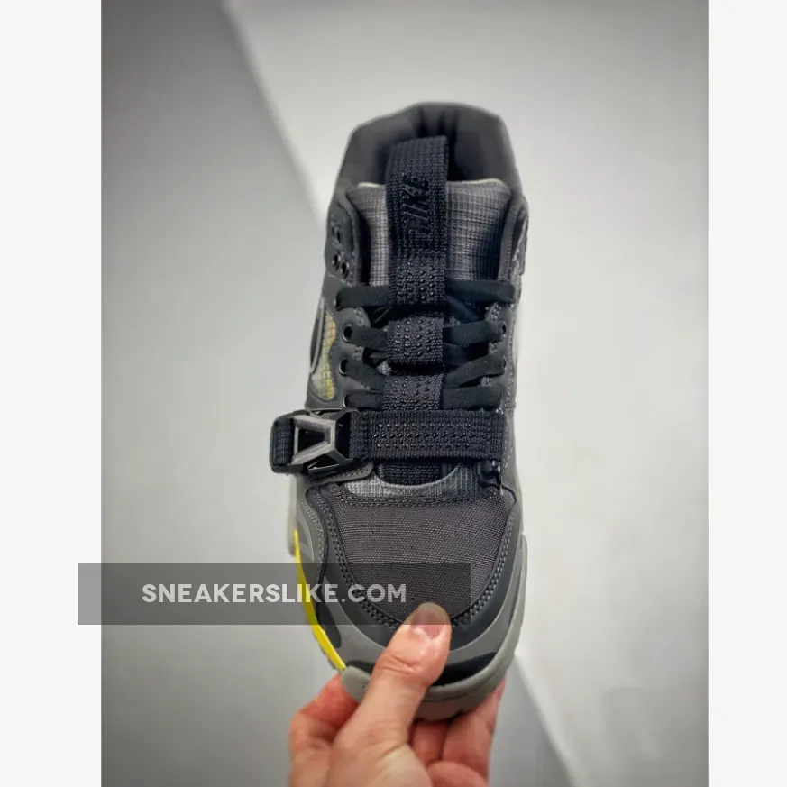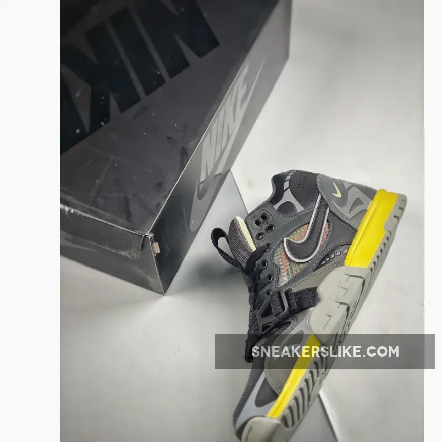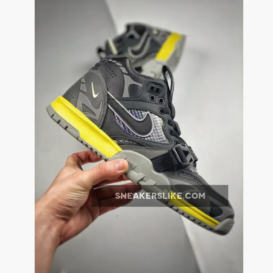 Dressed in a Dark Smoke Grey, Black, Iron Grey, and Off Noir color scheme. This “Utility” version of the Nike Air Trainer 1 comes with a hiking aesthetic featuring upgraded materials such as a ripstop-like build with ballistic mesh at the toe box. It also replaces the usual Velcro strap with a buckle system at the forefoot along with a pull tab that runs down the tongues. 3M reflecting detailed throughout its upper completes the design.