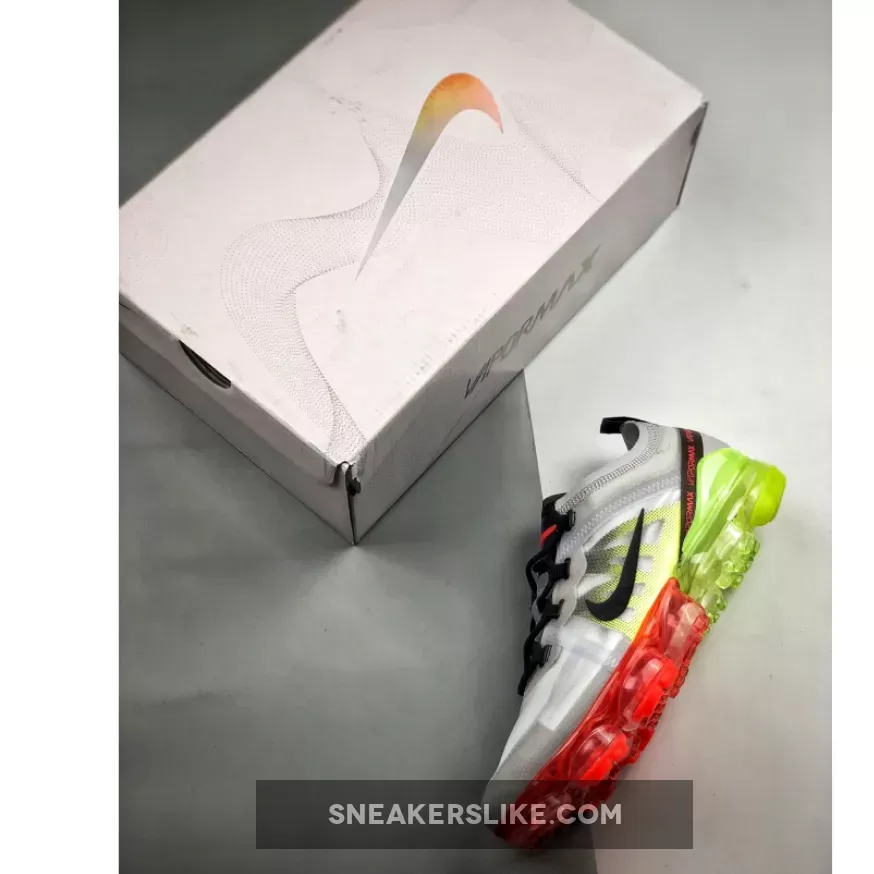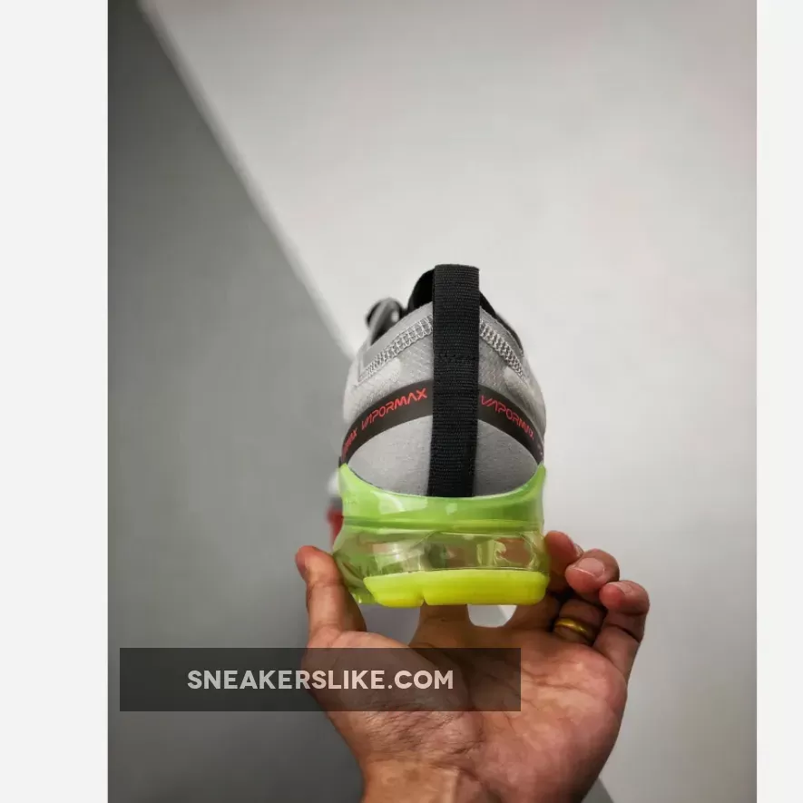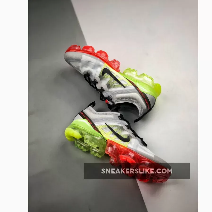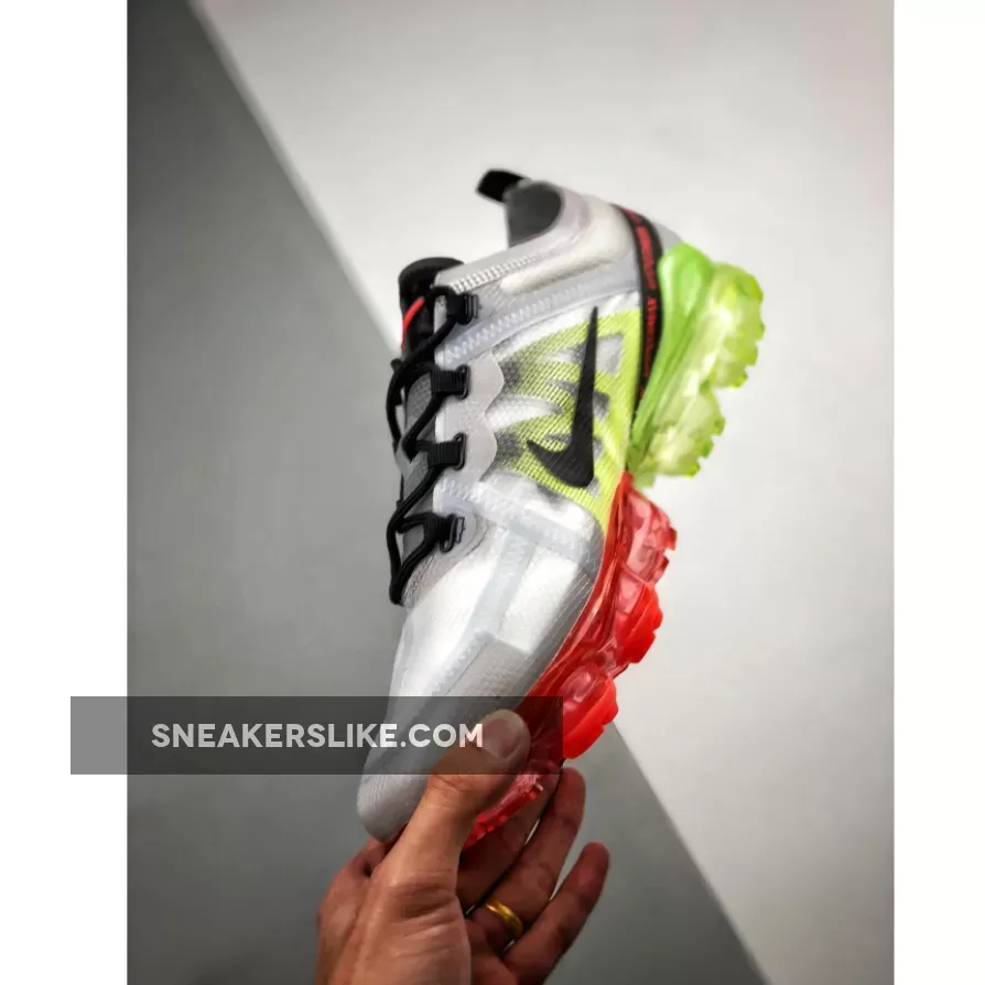 Dressed in a Pure Platinum, Black, Volt, and Bright Crimson color scheme. This Nike Air VaporMax 2019 features a Platinum translucent TPE-infused upper paired with Black detailing throughout. Highlighting the shoe are Volt and Crimson accents making them perfect for the spring season.