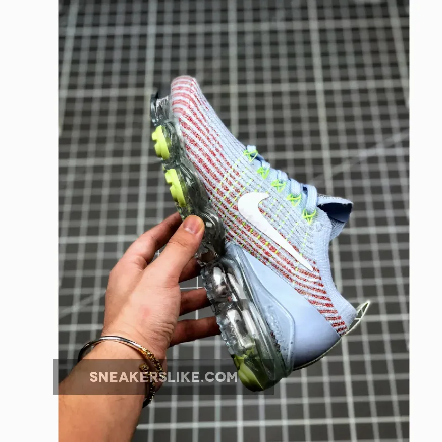 This offering sports a Multicolored knitted upper with Grey Flyknit overlays and heel counter. A White Swoosh logo on the sides highlighted with Volt accents on the Flywire cables, tongue label, back pull tabs, and traction on the outsole.