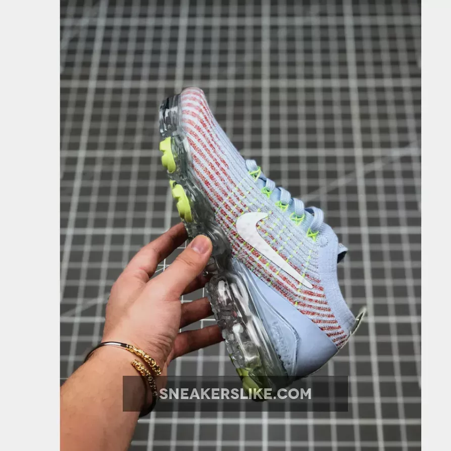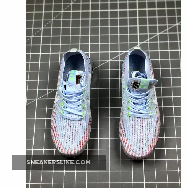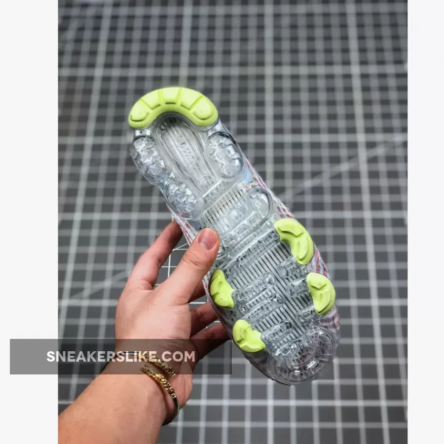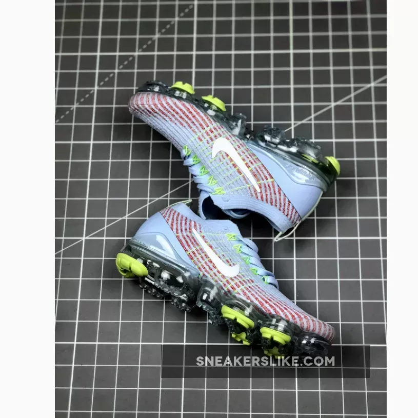 This offering sports a Multicolored knitted upper with Grey Flyknit overlays and heel counter. A White Swoosh logo on the sides highlighted with Volt accents on the Flywire cables, tongue label, back pull tabs, and traction on the outsole. A shimmery full-length VaporMax sole unit completes the design.