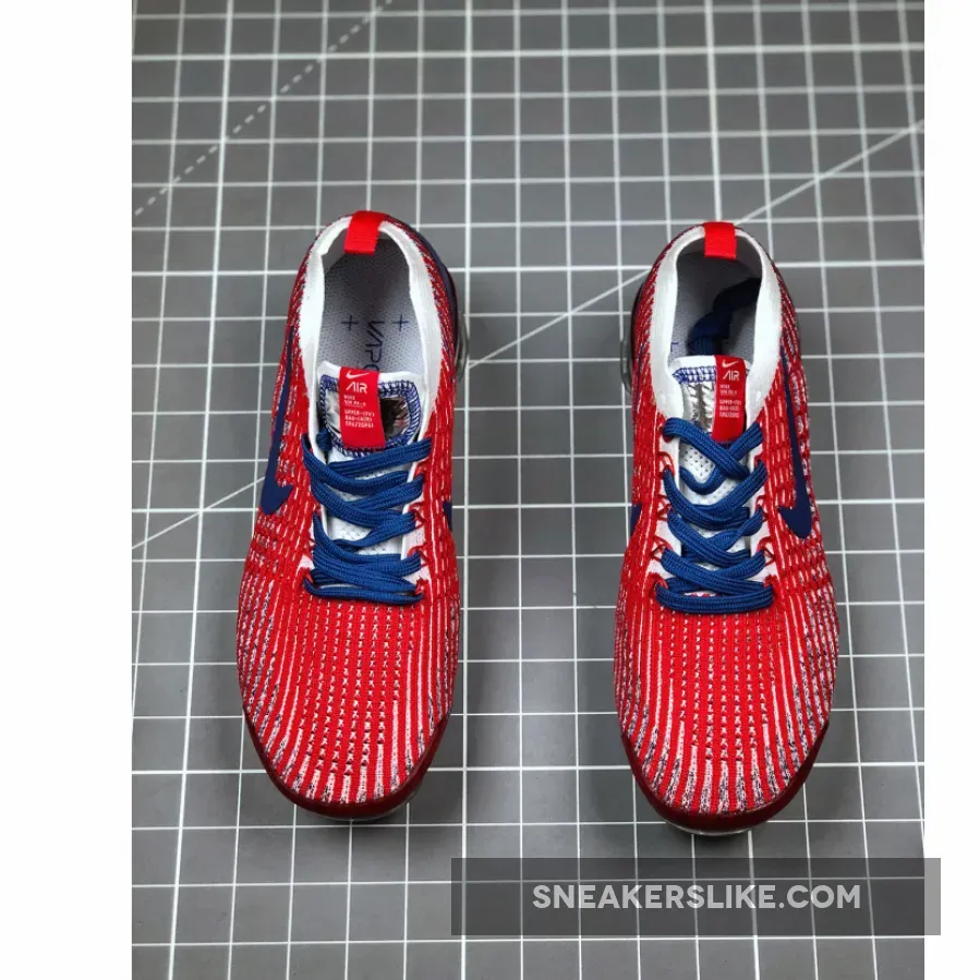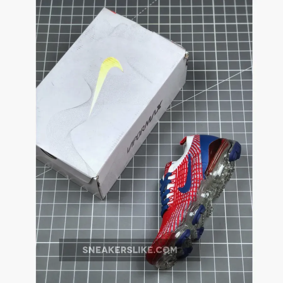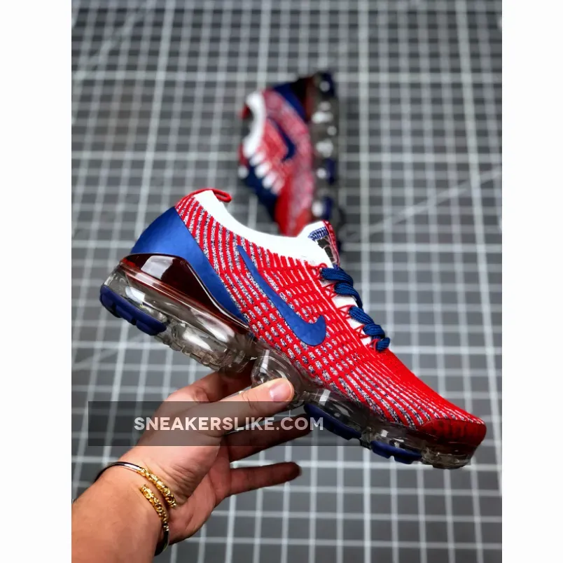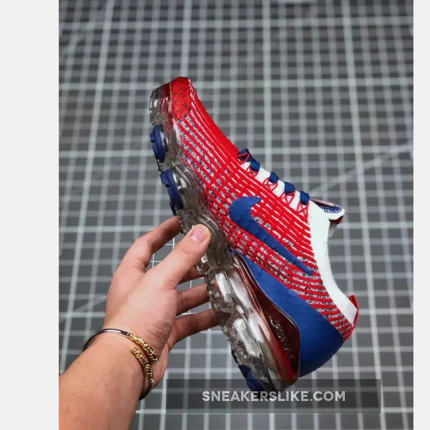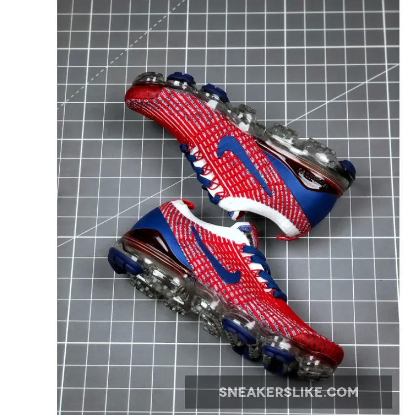 One of those includes the Nike Air VaporMax 3.0 that features a White and Blue knitted upper with Red striped overlays.