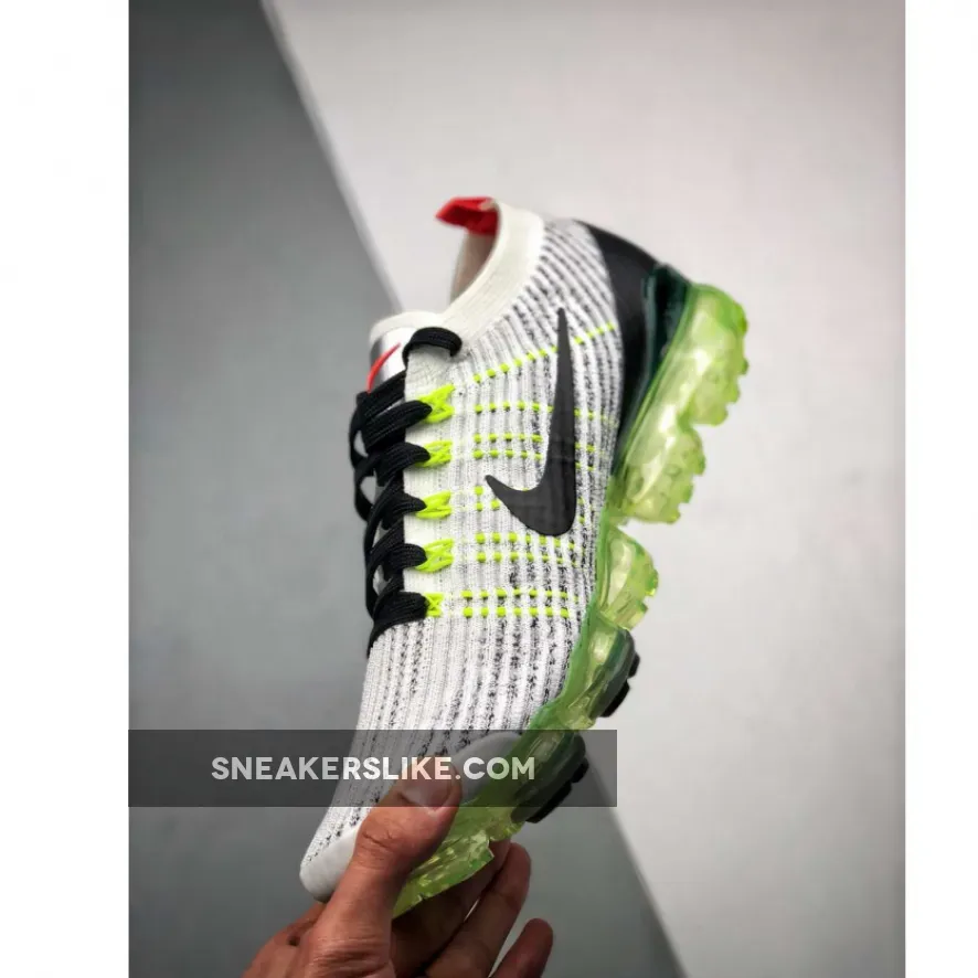 Today, we take a look at a vibrant take of the third installment VaporMax silhouette. This iteration features a White Flyknit upper with Black strikes throughout, along with bold Black detailing on the Swoosh logo, laces, and heel counter. Volt accents appear on the Flywire cables lace tips and VaporMax sole, while having Crimson hits on the tongue label and back heel tab.