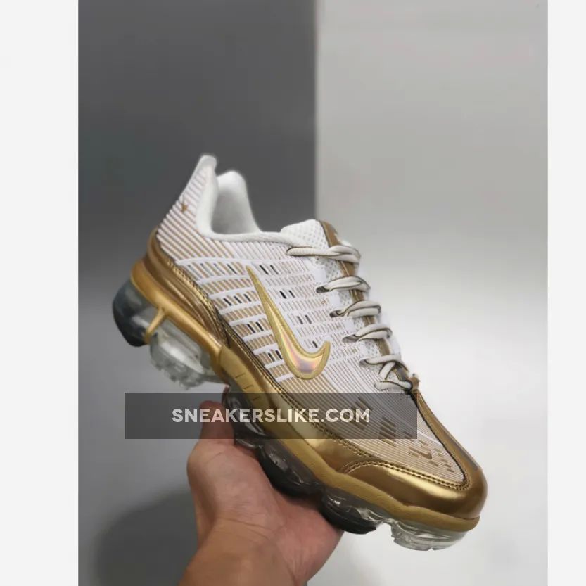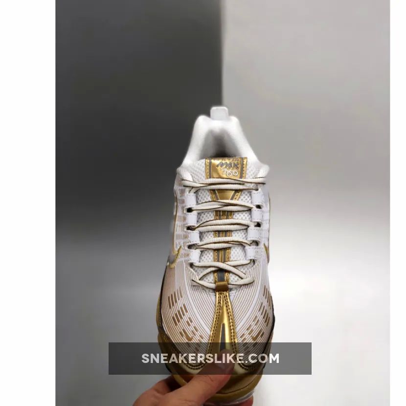 Taking a pristine white base as its canvas, Beaverton weaves in streaks of glimmering “Metallic Gold” into the embossed lines running through the entire sneaker, creating a gradient effect originating from the toebox. Branding comes in the form of a white Swoosh logo on the lateral sides, outlined by the very same golden stitching, which also runs up from the toe through the throat to the tongue, coupled with dashes of “Reflect Silver” highlights.