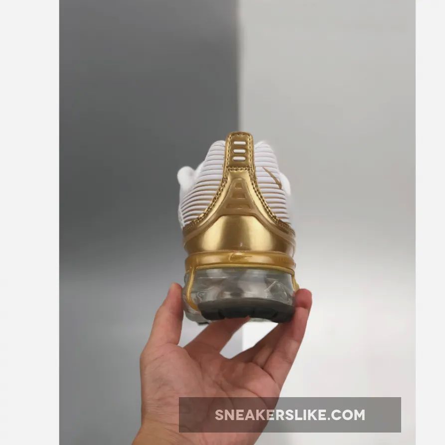 Moving further down, Nike splashes the premium color completely around the full-length foam midsole, rising up to the toe and heel panels which wrap around the front and rear of the shoe. Finally rounding off the design is a translucent VaporMax unit with subtle dashes of black for a welcome contrast.