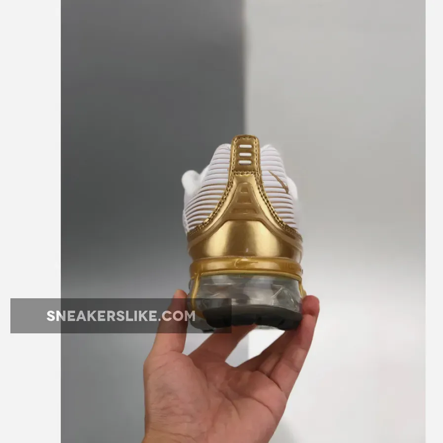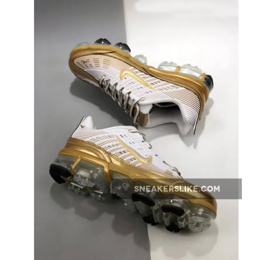 Taking a pristine white base as its canvas, Beaverton weaves in streaks of glimmering “Metallic Gold” into the embossed lines running through the entire sneaker, creating a gradient effect originating from the toebox. Branding comes in the form of a white Swoosh logo on the lateral sides, outlined by the very same golden stitching, which also runs up from the toe through the throat to the tongue, coupled with dashes of “Reflect Silver” highlights. Moving further down, Nike splashes the premium color completely around the full-length foam midsole, rising up to the toe and heel panels which wrap around the front and rear of the shoe. Finally rounding off the design is a translucent VaporMax unit with subtle dashes of black for a welcome contrast.