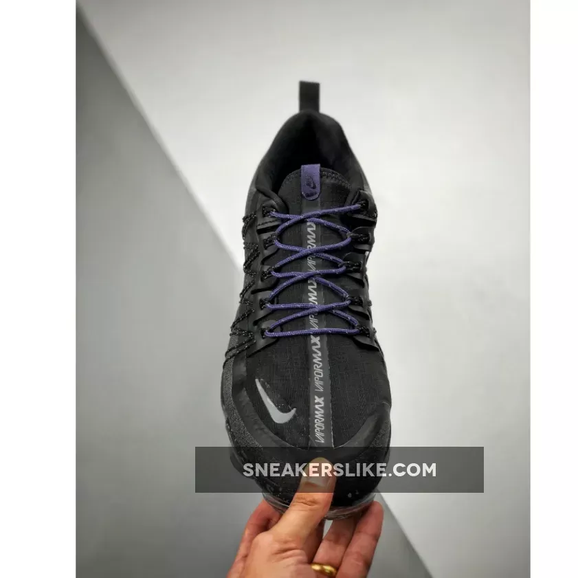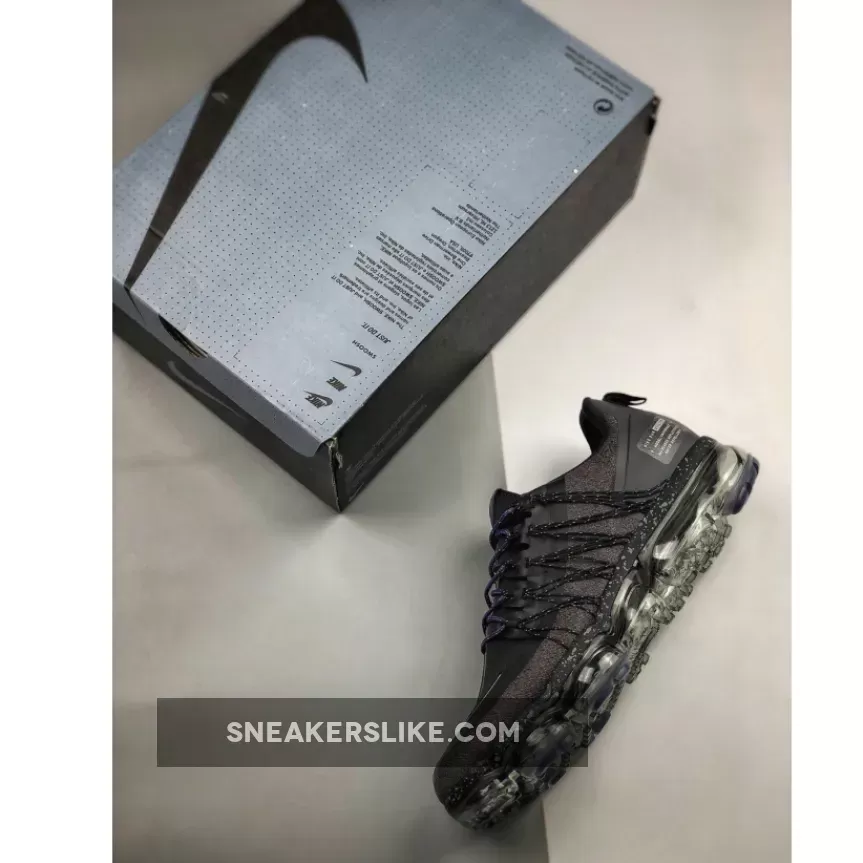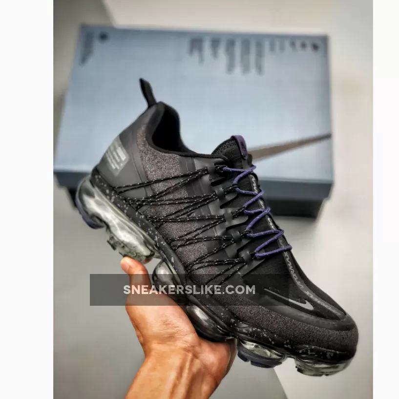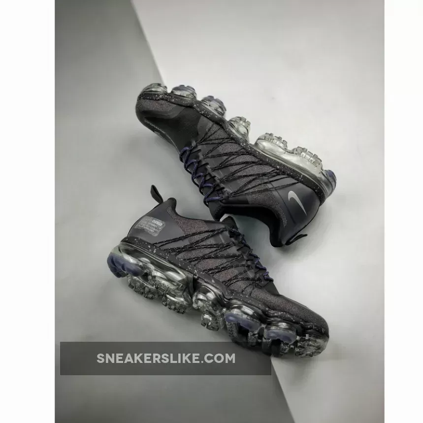 Dressed in a Black, Reflect Silver, Thunder Grey, and Sanded Purple color scheme. This Nike Air VaporMax Run Utility features an exposed Flywire and toggle lacing system atop a speckled midsole.