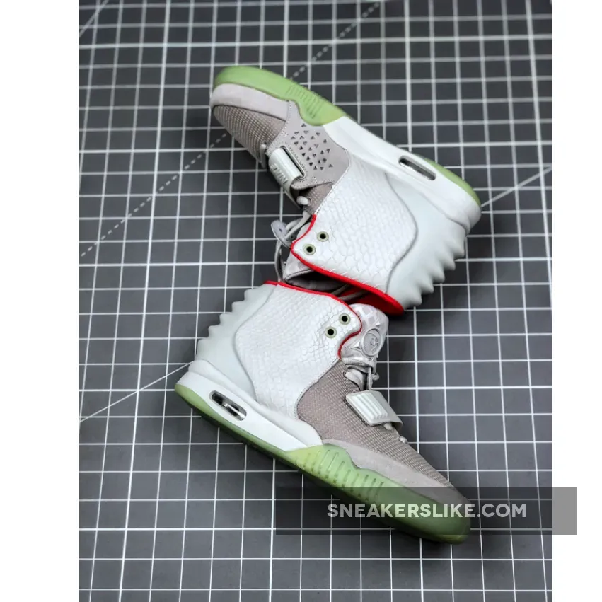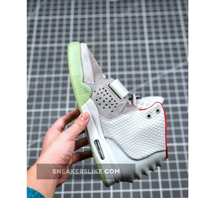 Launched in June 2012, the Air Yeezy 2 NRG ‘Pure Platinum’ features a subdued colorway that blends varying shades of grey on the upper and a contrasting pop of bright red on the collar lining. The snakeskin texture on the side panels and prominent ridges on the molded rubber heel serve to elevate the design. Using the Air Tech Challenge II midsole to keep the shoe grounded in the heritage of the Swoosh, the unique design allows it to straddle the line between sport and fashion.
