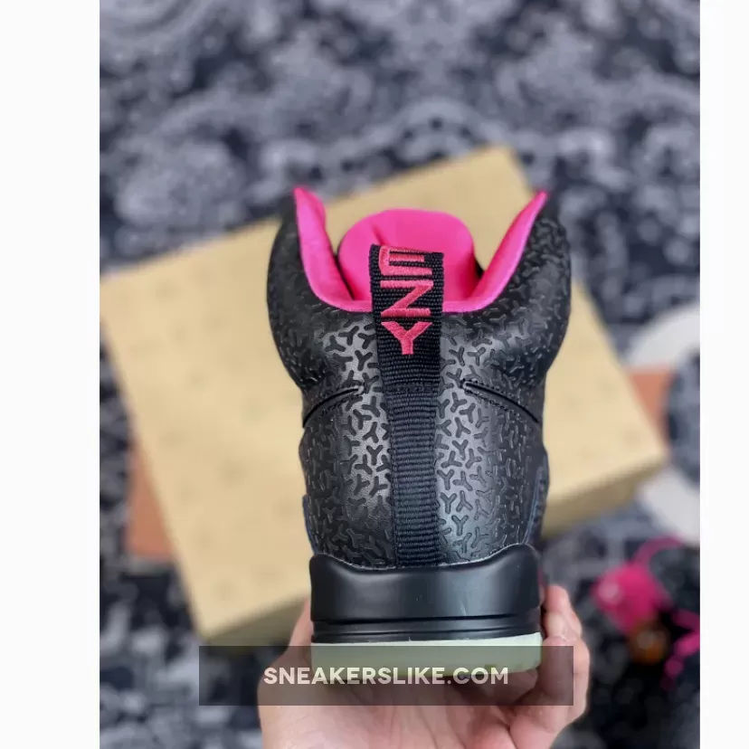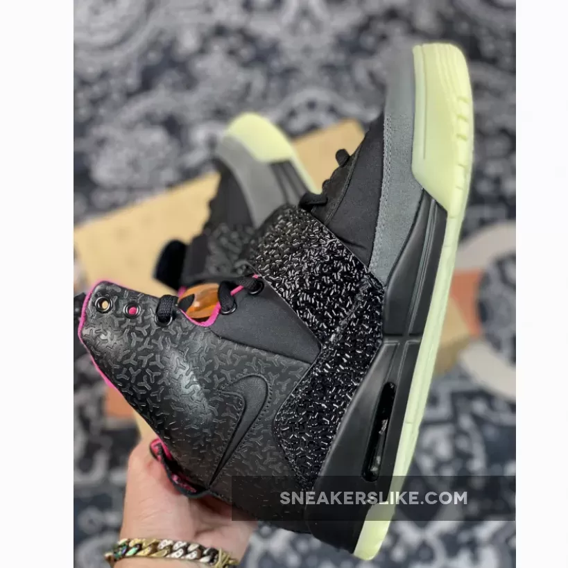 Dressed in a Black-based upper paired with Pink accents on the inner lining, lace-lock and “YEEZY” printed heel tabs. Its entire upper featured an all-over “Y” print lines completed with a glow-in-the-dark outsole.