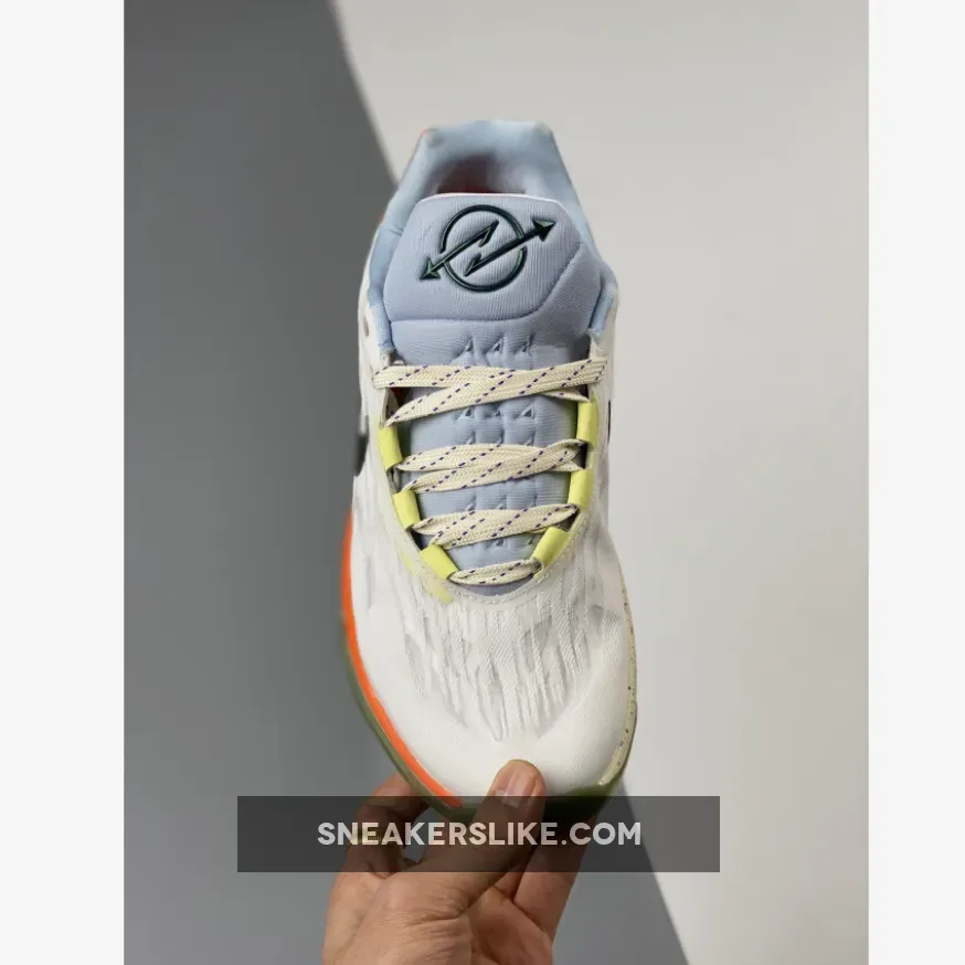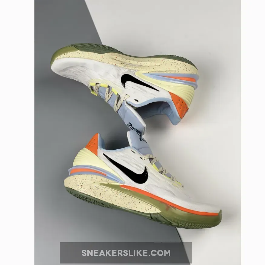 This offering of the Air Zoom GT Cut 2 comes dressed in a White, Black, Ice Blue, and Orange color scheme.