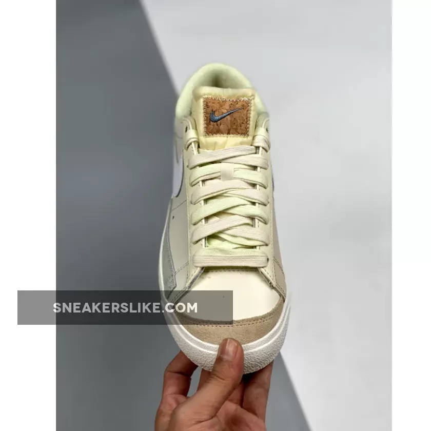 Dressed in a Sea Glass, Sail, Seafoam, and White color scheme. This offering of the Nike Blazer Low sports muted colors and soft suede details, to a cork material on the tongue label and insole. Other features include special graphics and icons on the heels and insoles.