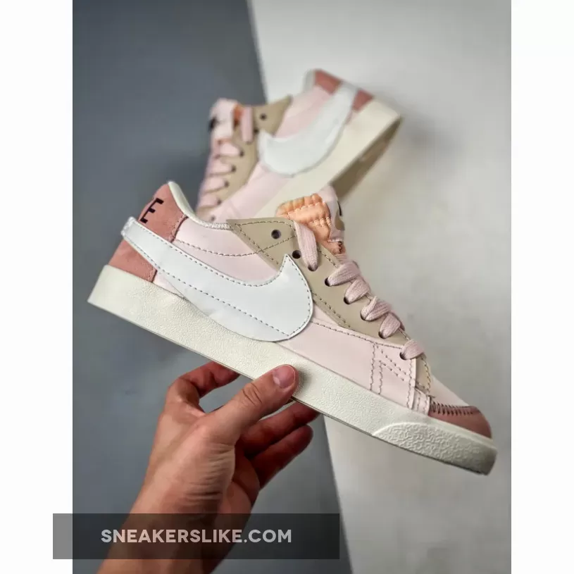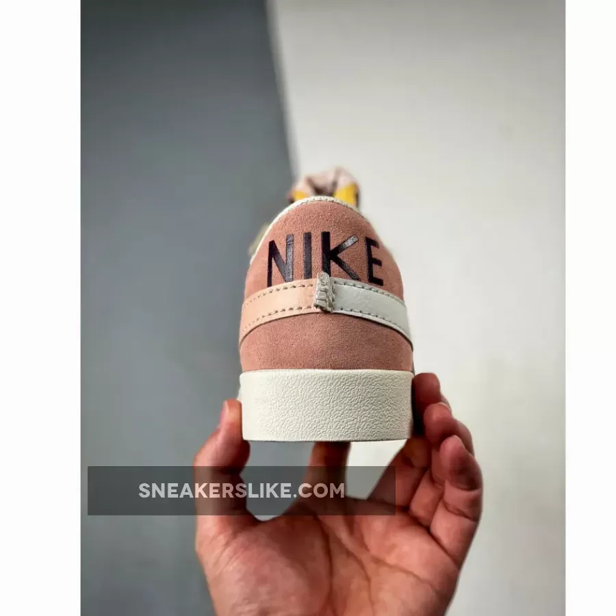 this new Nike Blazer Low Jumbo show that it comes dressed in many shades of Pink tones placed alongside shades of White and Tan. The sneaker is constructed in a smooth leather upper with suede hits landing on the front and rear of the sneaker. In line with its predecessors, the only offering of suede touches down on the mudguard and rear heel counter featuring a bright flamingo hue while the quarter overlay opts for a tan accent. Disparate from its typical construction, the vamps stitching dismisses the identical color palette, instead bearing a seldom touch of maroon as the heel’s NIKE text is treated with dark brown. Underfoot, an off-white midsole works in tandem with the complimenting enlarged Swoosh thats medial side flaunts a rose pink tone.