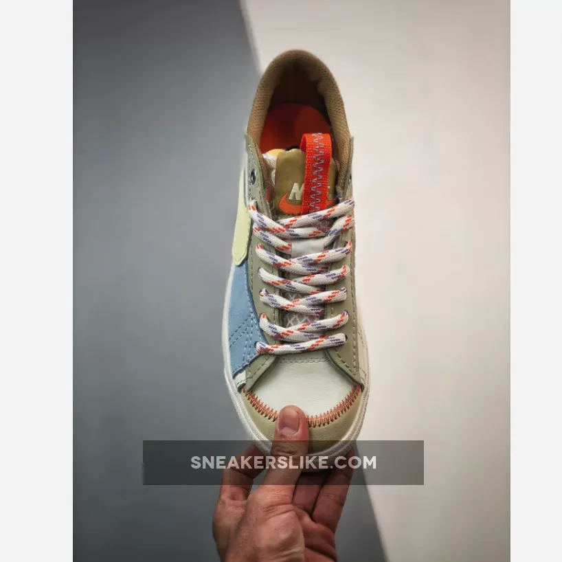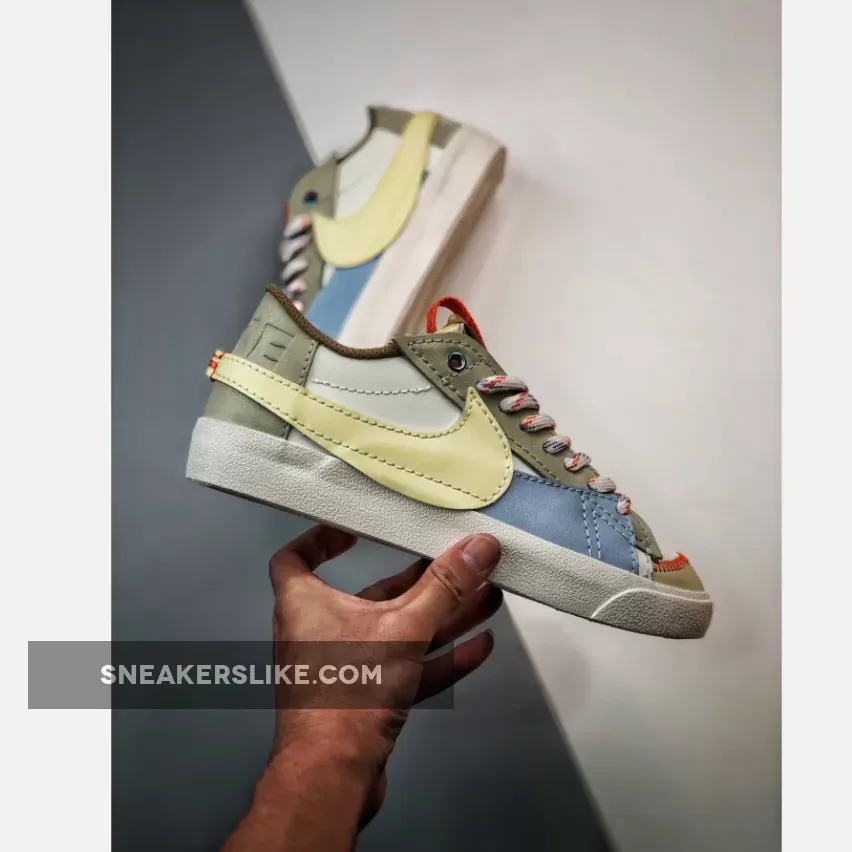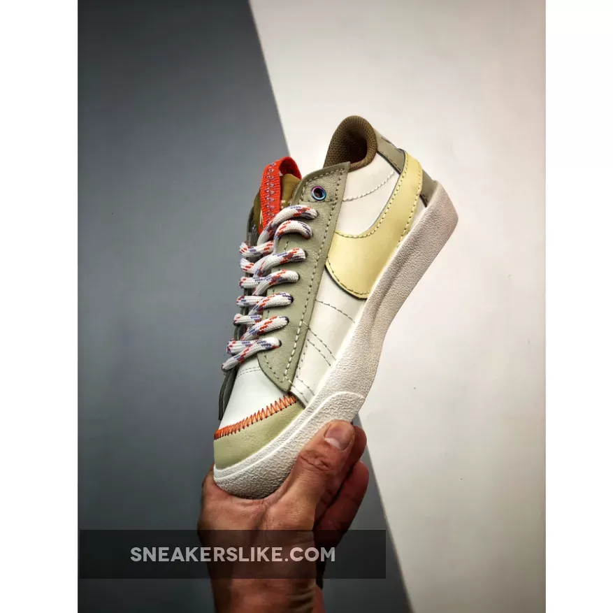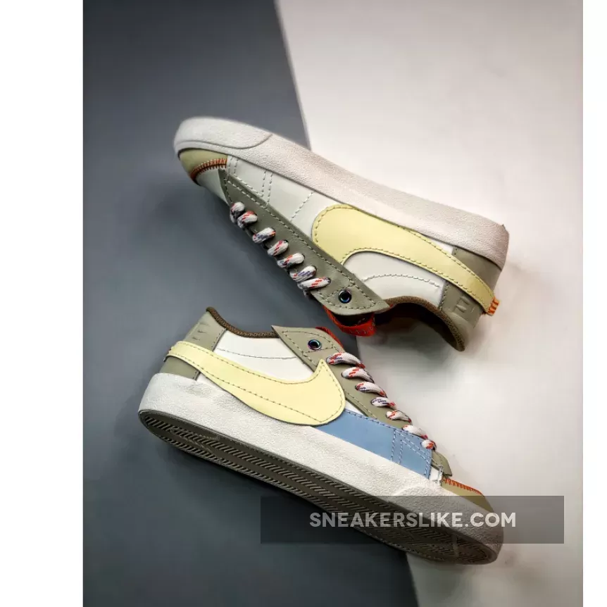 Cute and quirky, the Nike Blazer Low Jumbo Sail boasts an interesting multilayered mixed-material upper. Even the tan suede eye stays and heel accent also showcase an oversized look.