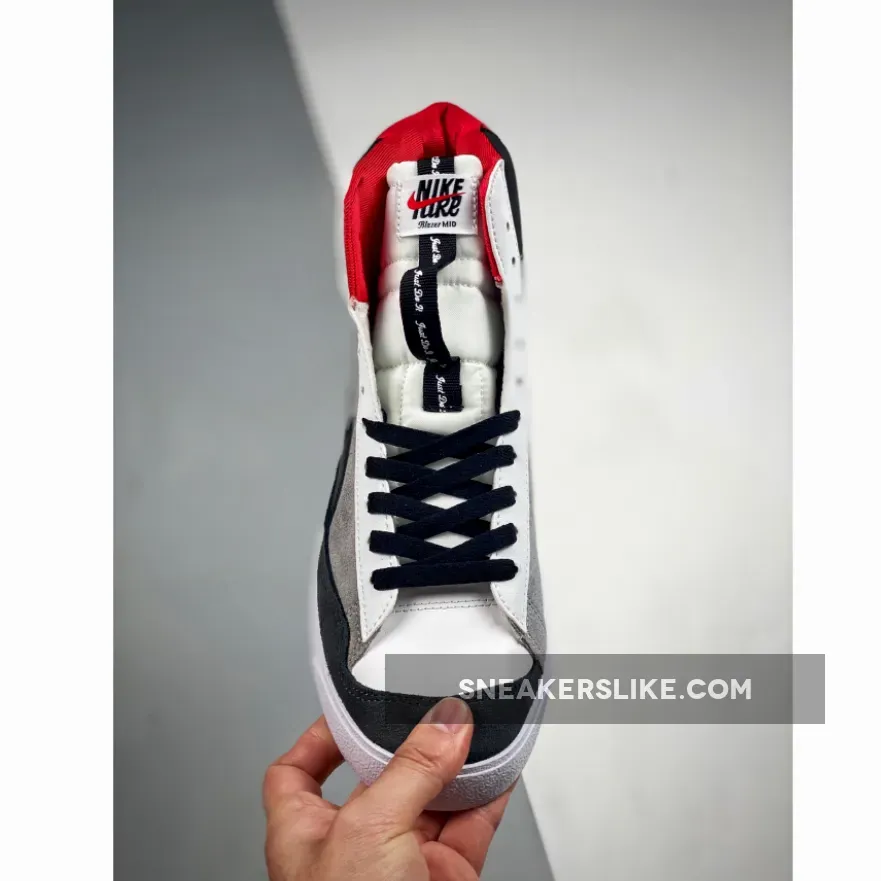Never miss a beat with the Nike Blazer Mid 77 SE Dance GS. Designed for intense dance sessions, this pair is equipped with features that allow for seamless movements. The lightweight upper boasts a mix of different materials: smooth black leather at the ankle, suede off-white at the side panels, fuzzy grey suede at the toe cap and pristine white leather at the eye stay. Inserted into this combination is an exaggerated Nike Swoosh. Elsewhere, the bright red heel tab and extended tab at the tongue with “Just Do It” print further the groovy dance floor-ready look.