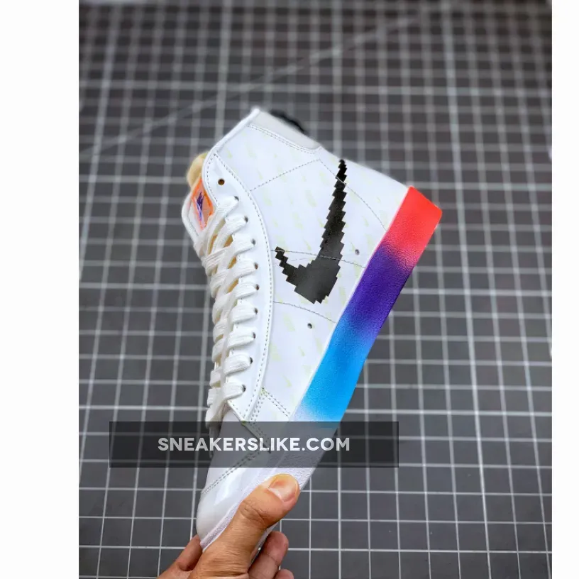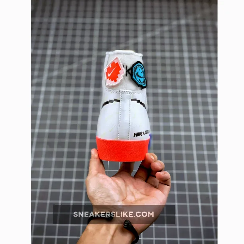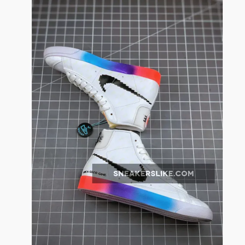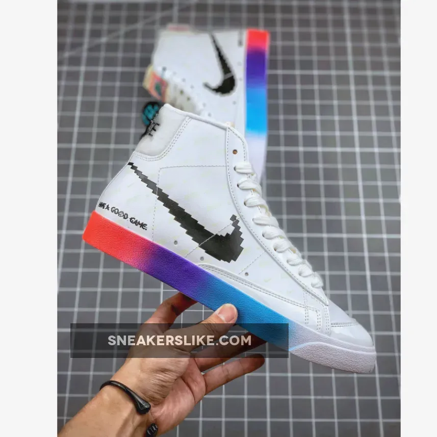 This Blazer Mid ’77 Vintage iteration dons a White/White/Bright Crimson/Black colorway, but that’s only the beginning of the story here. The shoes are packed with details, notably a “have a good game” print across the lower heels, a pixelated Swoosh logo, playful Velcro heel patches, a multicolored sole, and an all-over glow-in-the-dark branding treatment—and that’s only scratching the surface.