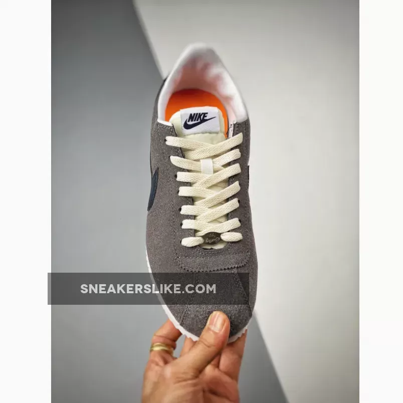 Nike’s OG running shoe, the Cortez, has a new variant honouring Georgetown University’s college basketball team, the Hoyas. Presenting the Nike Cortez Georgetown. This Cortez is clad in an all-grey suede upper from heel to toe. The Sail-coloured laces and nylon tongue contrast with this dark background. Another Hoya team colour joins the mix in the form of the navy blue smooth leather signature profile Swooshes on both the medial and lateral mid-panels. The insoles are bright orange with white Nike branding. Metallic silver lace deubrés that spell out “Cortez ‘72” embellish the vamp. The branding on the white tongue labels also follow suit. A Sail and navy blue midsole and a white herringbone-patterned outsole wrap up the design of this sneaker.Snag the Nike Cortez Georgetown on Our Store Supplier app and always be ready to catch the newest drops from Nike.