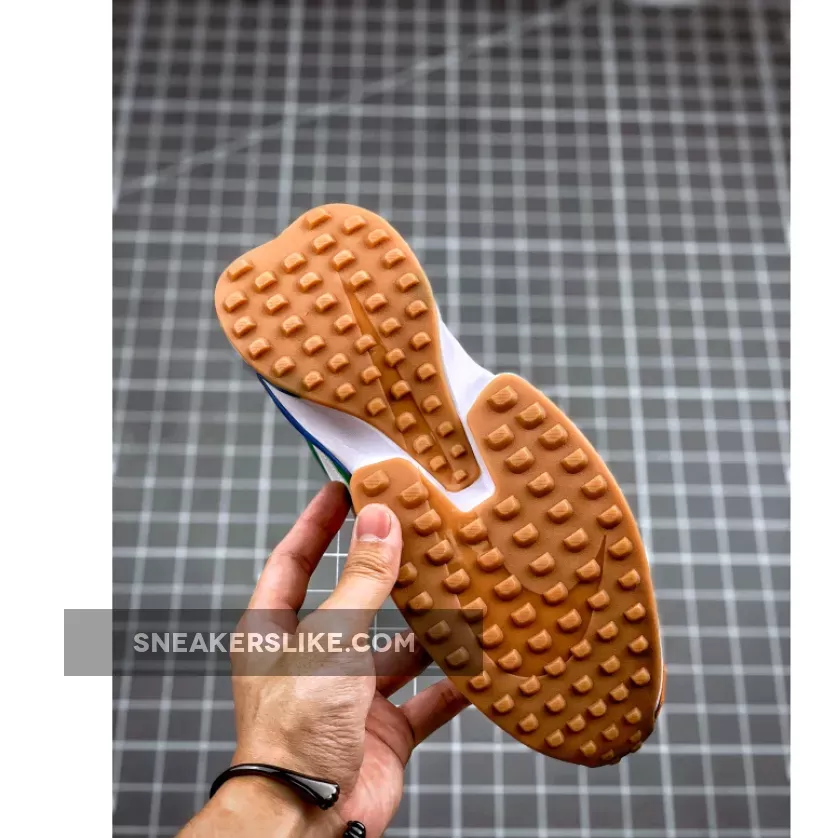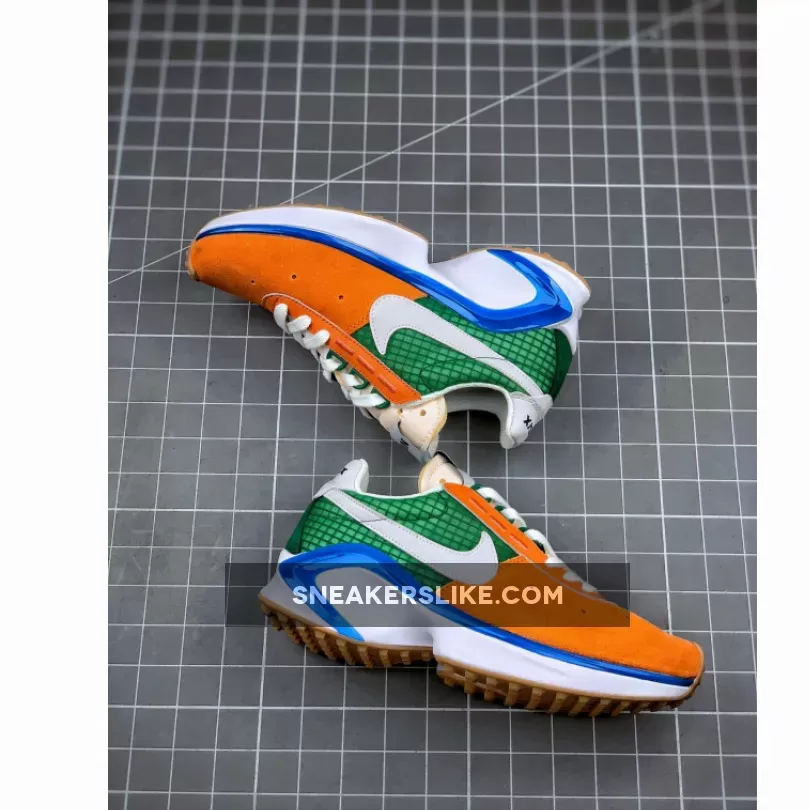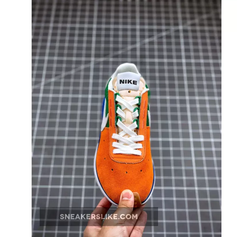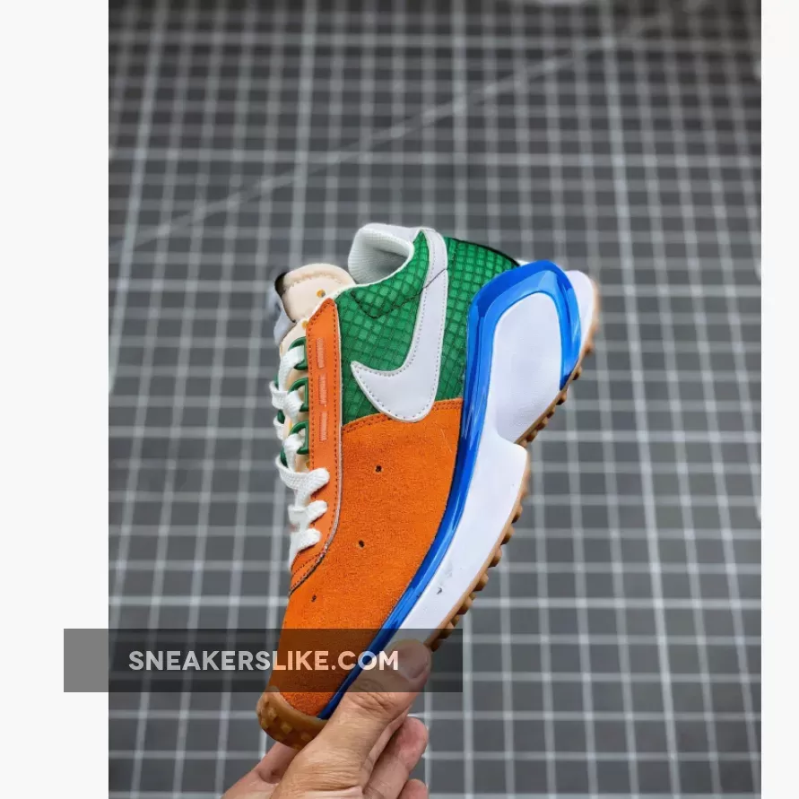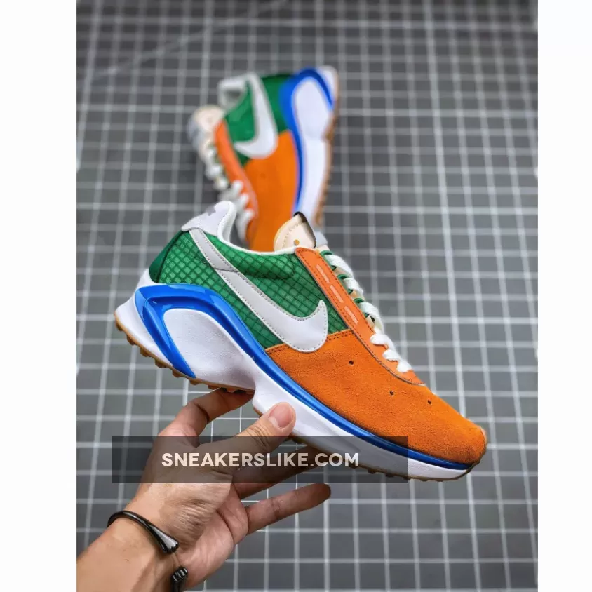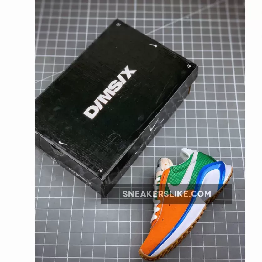 This offering of the shoe comes dressed in a Starfish, White, Pine Green, and Sail color scheme. It features Orange up front with Green in the rear while having White Swooshes, tongues, heels, liner, laces, and midsole. D/MS/X branding in the heel, a Blue plastic piece along the midsole atop a Gum waffle rubber outsole completes the design.