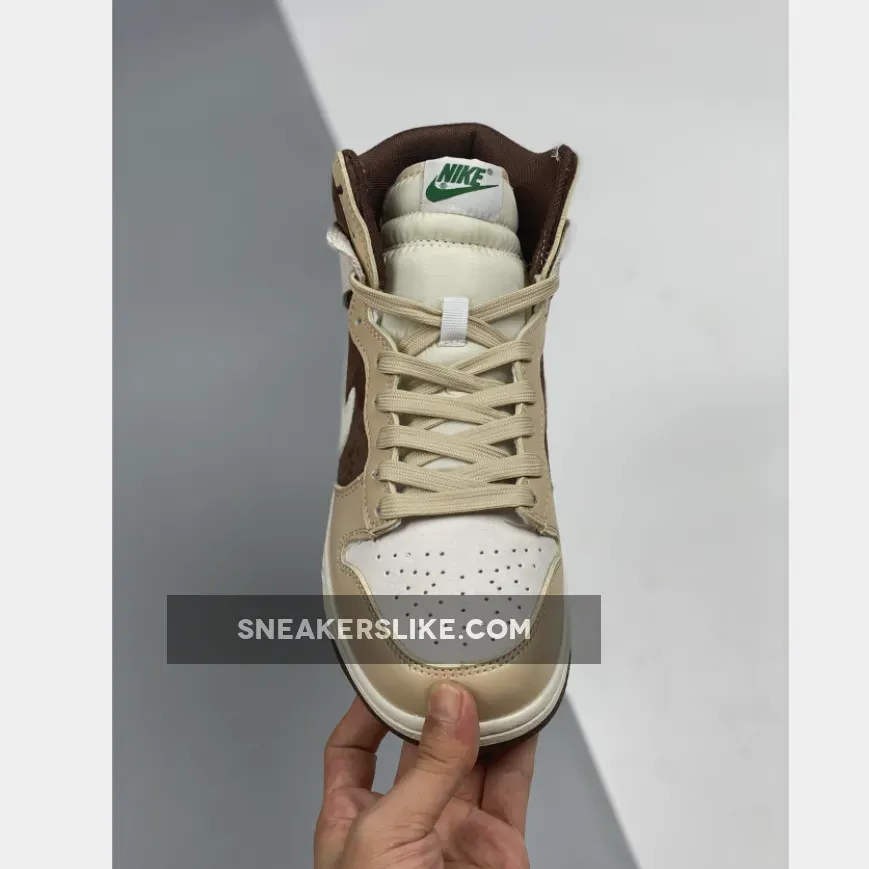This Nike Dunk High comes dressed in a Sail, Khaki and Light Chocolate color combination. Currently images have yet to leak, however they are expected to feature Sail leather across the base while Khaki and Chocolate detailing is spread throughout.