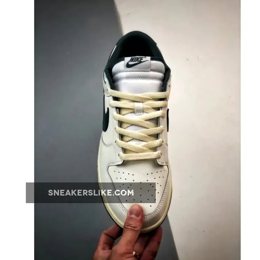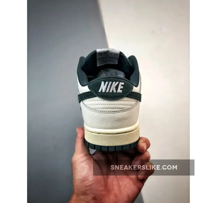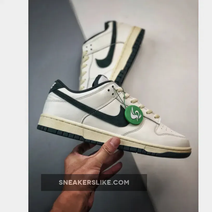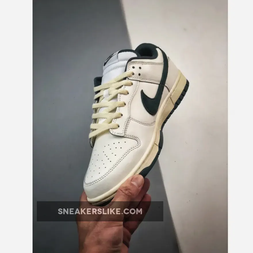 Done in a Sail/Deep Jungle-Coconut Milk-White color scheme, this special iteration of the Dunk Low combines college sports inspiration with a nostalgic vintage aesthetic.