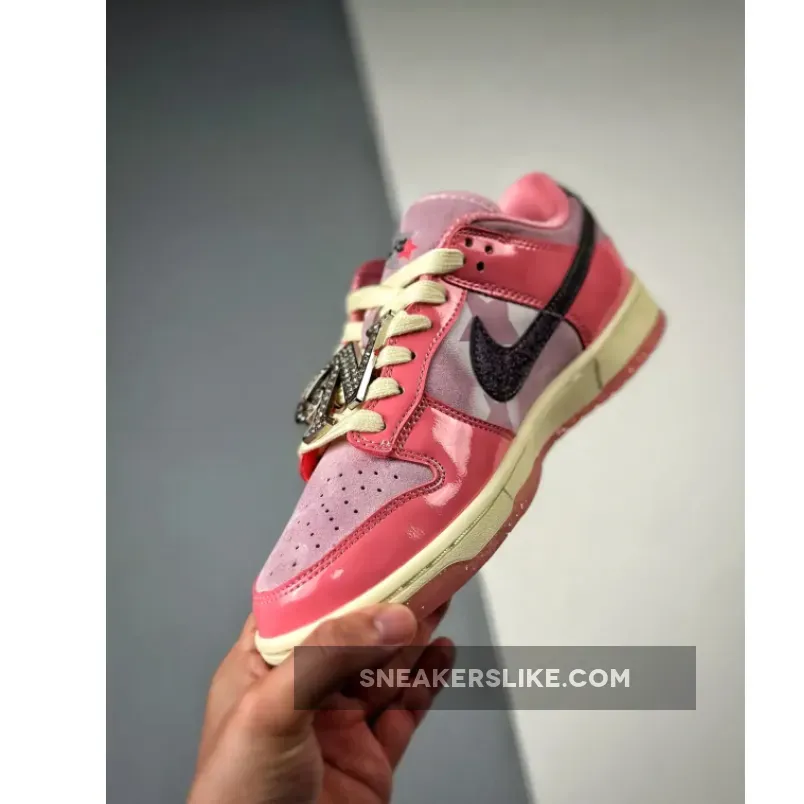 Although there is no official collaboration between Nike and Barbie, the timing couldn’t be better. The Nike Dunk Low boasts a plush suede base adorned with stars on the side panels, complemented by pink leather overlays on the toe, eyestay, and heels. The Swooshes and heels sport a lustrous dark brown shade, giving the shoes a glamorous touch. Adding to its charm is an oversized “N” lace accessory, embellished with faux-diamond stones. The tongues feature star motifs, while the shoe’s overall look is rounded off with a sail midsole and semi-translucent pink outsole, sprinkled with star speckles.