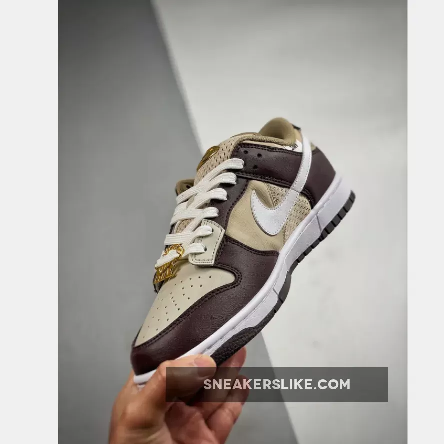 Despite everything that seems to be going on here, the “Bling” Dunk’s brown colour scheme manages to tone the pair down enough to make them extremely wearable, with a white Swoosh, white laces and white and dark brown sole unit adding a more versatile feel.