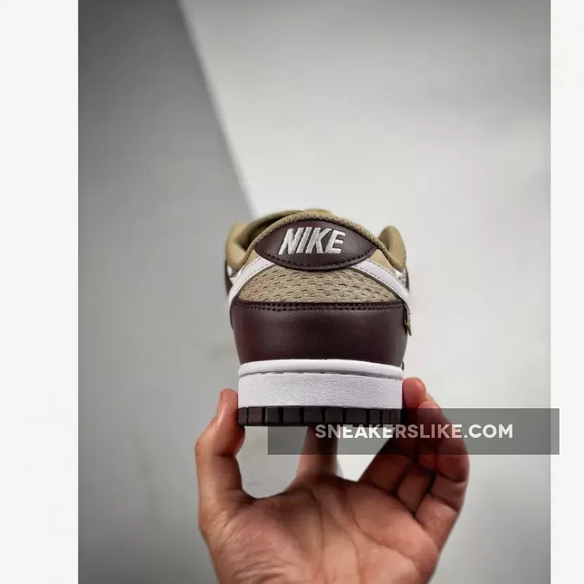 This latest brown and cream Dunk Low has been given a glitzy update. At first glance, the gold tongue tags and matching Nike chain dubraes are the first things to catch the eye, but a closer look at the “Bling” Dunk Low reveals that there is actually much more going on. The silhouette’s usual leather construction has been swapped for a slightly chaotic arrangement of leather, mesh, ripstop and burlap fabrics, with split panels, added overlays and misplaced tags adding extra points of detail.