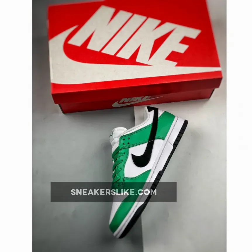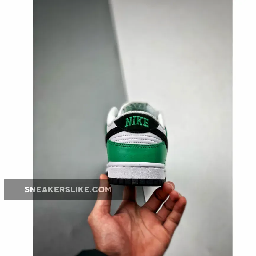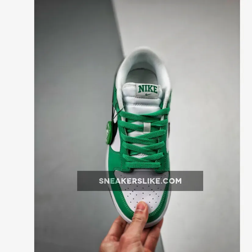 Nike now readies the low-cut model in color-blocked Boston Celtics hues ideal for basketball fanatics. The Massachusetts-based team stimulates the colorway as a sleek white base starts things off, contrasted by vivid green touches that hit the mudguards, lacing systems, and heel counters.bearing quite the resemblance to the OG ‘Heineken’ Dunks. The similarities lie predominantly by way of the colour palette, with the pairs featuring white underlays with green overlays. The colourway also comes complete with black Swooshes. The pair is complete with white midsoles and black rubber bottoms.