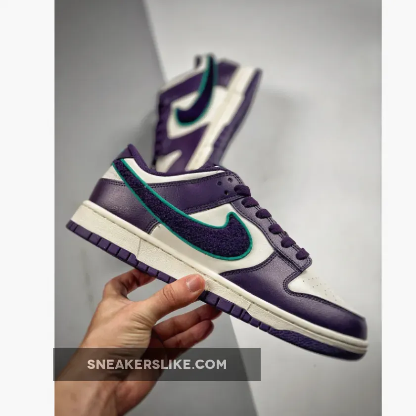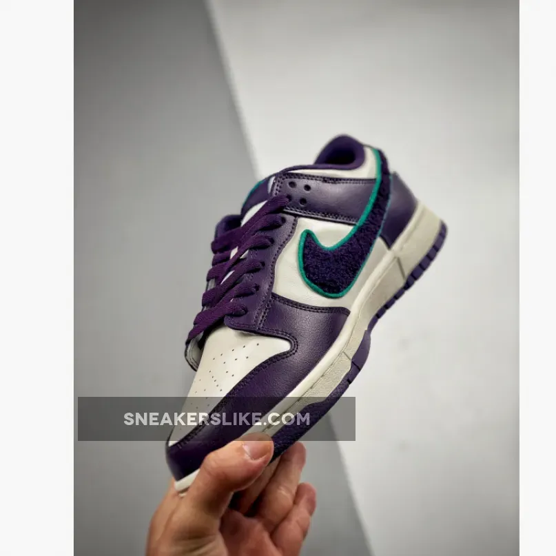 chenille swoosh dunk low #nike dunk low grand purple #dq7683-100 #purple and green dunks
