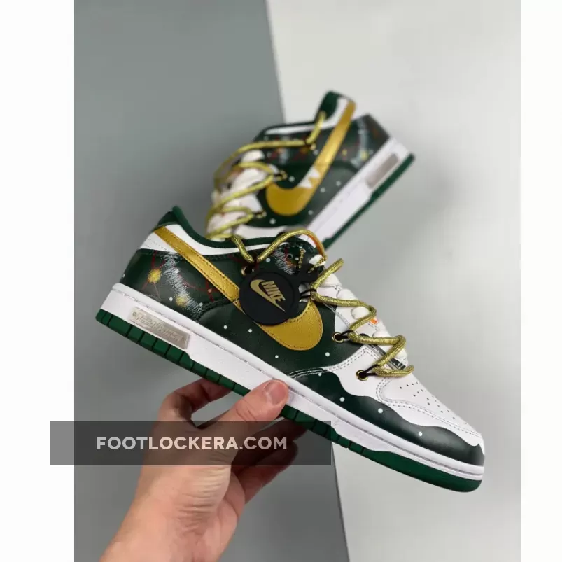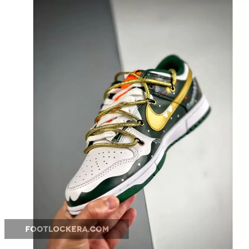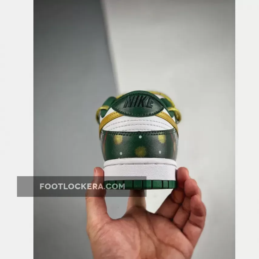 Creating more wild textures are the jasmine green lizard overlays with a White green stitching, while some red edge paint is spread out between the shoe’s overlays and eyelets to elevate the seasonal look. Ceeze and John have completed the look using a vibrant Grinch green liner, black shark Swoosh, and ornamental tongue tab