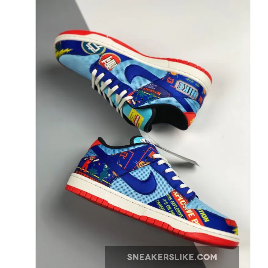 While we’re still in the early stages of the new year, the Swoosh label starts strong by giving us a closer look at the Nike Dunk Low Firecracker Chinese New Year. Official images we have here at Our Store Supplier will guarantee a huge hype surrounding it so keep reading on for the Nike Dunk Low Firecracker Chinese New Year raffles list if you want to secure a pair on drop day. To celebrate the Year of the Ox, the Oregon-based sportswear label takes their iconic Nike Dunk silhouette and paints the panels in hues of blue featuring different graphics throughout heavily-inspired by firework packaging patterns and much more.The world-famous Nike Swoosh logo remains present on the lateral and medal side panels, and further branding details appear across the structure in custom logos, significantly the Nike text printed on the lateral ankle. To complete the design, a warning label is stamped across the tongue almost as if it’s telling you to stay alert as these will be one hell of a release.There is no doubt that the Nike Dunk Low Chinese New Year Firecracker will explode in demand when it launches on the 22nd of January 2021 for its official release date.