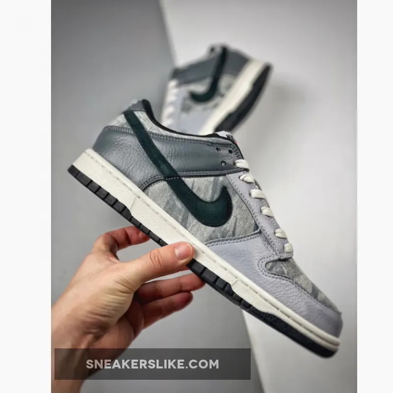 “The Nike Dunk Low ‘Copy Paste’ showcases a unique design centered around Nike’s heritage graphics. A greyscale palette is applied to an upper built with tumbled leather and a French terry underlay. The latter is covered in an all-over graphic print, composed of Nike branding that appears to have been copied and pasted. Contrasting black accents settle on the signature Swoosh, collar lining, and rubber outsole, featuring a traction pattern originally made for pivoting on the hardwood.Far from your typical Dunk Low, the Nike Dunk Low Copy Paste Grey rebels against the norm and revels in a unique look. Instead of a traditional smooth colourless base, this pair features Nike’s branding and famed Check in its French terry underlay. The same graphic graces its usual places at the footbed and tongue tag.Continuing the palette’s cool tone are the “Grey Fog”, “Smoke Grey”, and “Wolf Grey” tumbled overlays that cover the toe, quarter windows and heel.