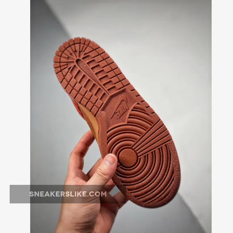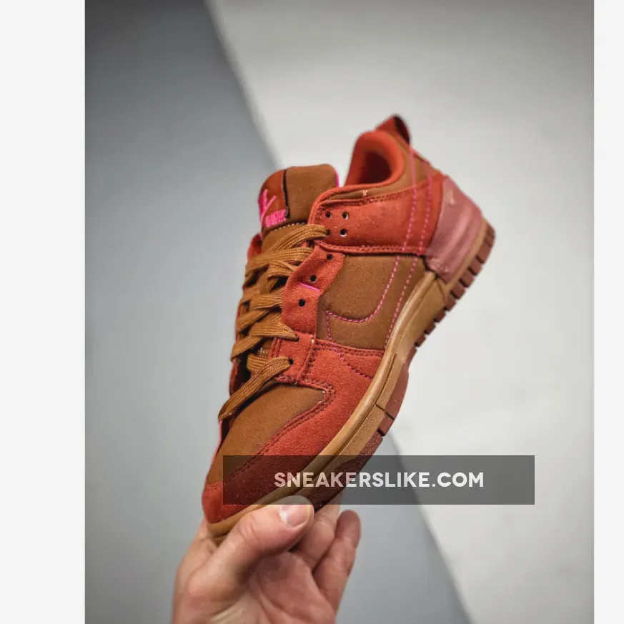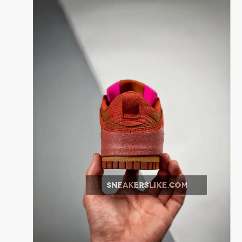 Solid color scheme on the Nike Dunk Low Disrupt 2 ‘Desert Bronze/Pink Prime’. The mix of materials offers a unique texture. Oversized Swoosh and mini embroidered Swoosh add a touch of whimsy. Comfortable and stylish, perfect for everyday wear. #NikeDunk #SneakerReview