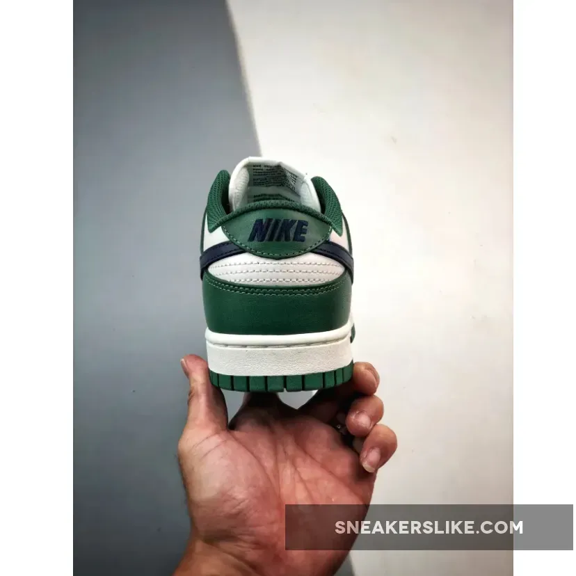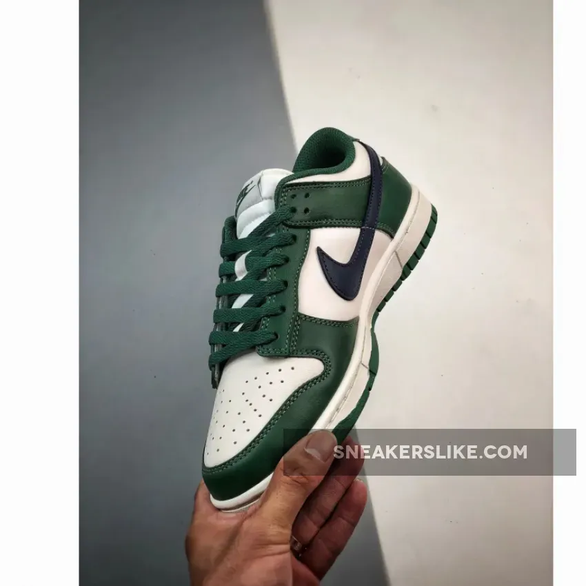The 37-year-old Nike Dunk Low has a new tri-coloured iteration in vibrant cool hues. Check out the Nike Dunk Low Gorge Green. This Dunk Low has a classic “colourless” smooth white leather base. The overlays on the toe cap, the mudguard, the eye stay panel, the foxing and the heel tab are in deep and sumptuous Gorge Green. Midnight Navy joins the colour scheme via the signature profile Swooshes on both the medial and the lateral mid-panels as well as the embroidered Nike text branding on the heel tabs.
