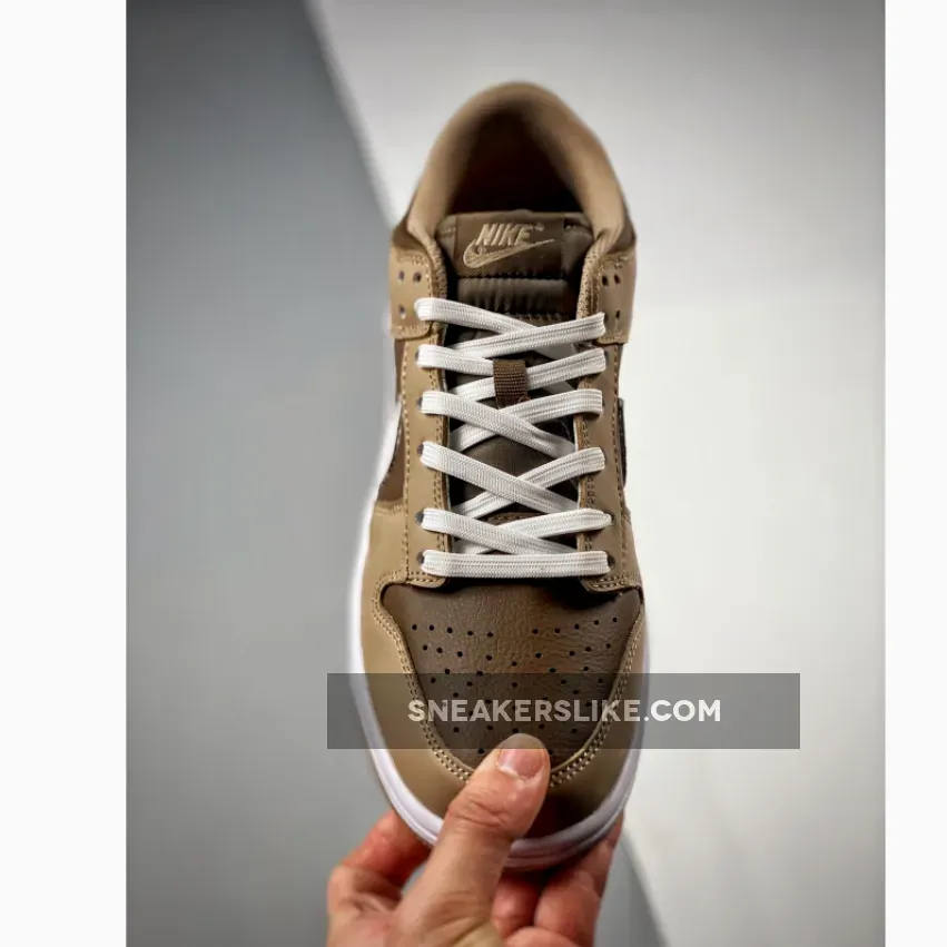 The most recent Nike Dunk Low sports an all-brown colourway. Don’t be confused about the shoe’s title. The Nike Dunk Low Judge Grey is actually an earth-toned pair.This Dunk Low has a tumbled leather base in a mocha brown shade. The overlays are in contrasting light tan. The mostly brown upper set of the white smooth leather Swooshes on the medial and lateral sides of the shoe very nicely. The mocha brown nylon tongue features a light brown Nike logo while the Nike text logo is embroidered in white on the tan-coloured heel tabs.