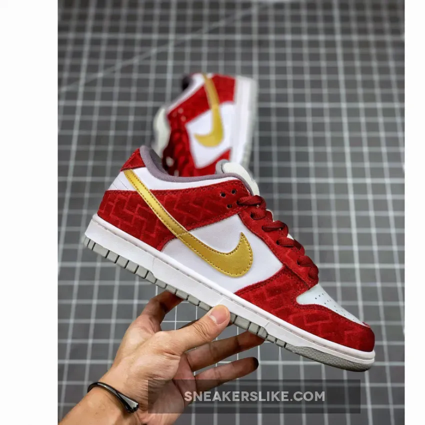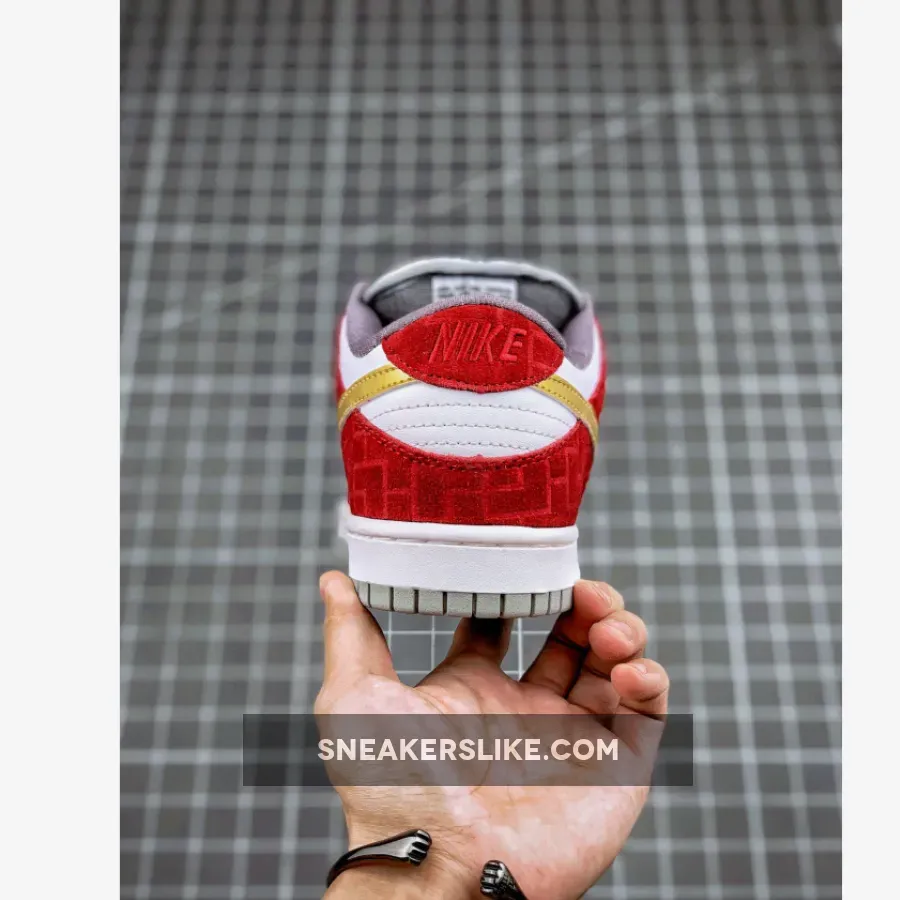 . The color and pattern embossed into the suede are remnant of the temples and architecture of Shanghai. The tongue features and embroidery on it, which represents “Good Luck and Fortune”.