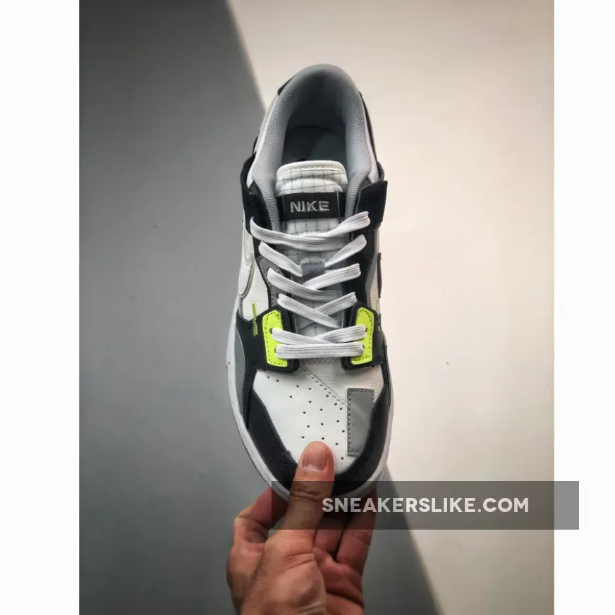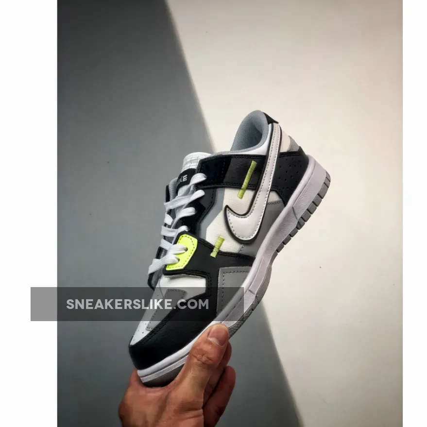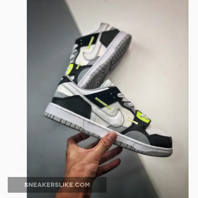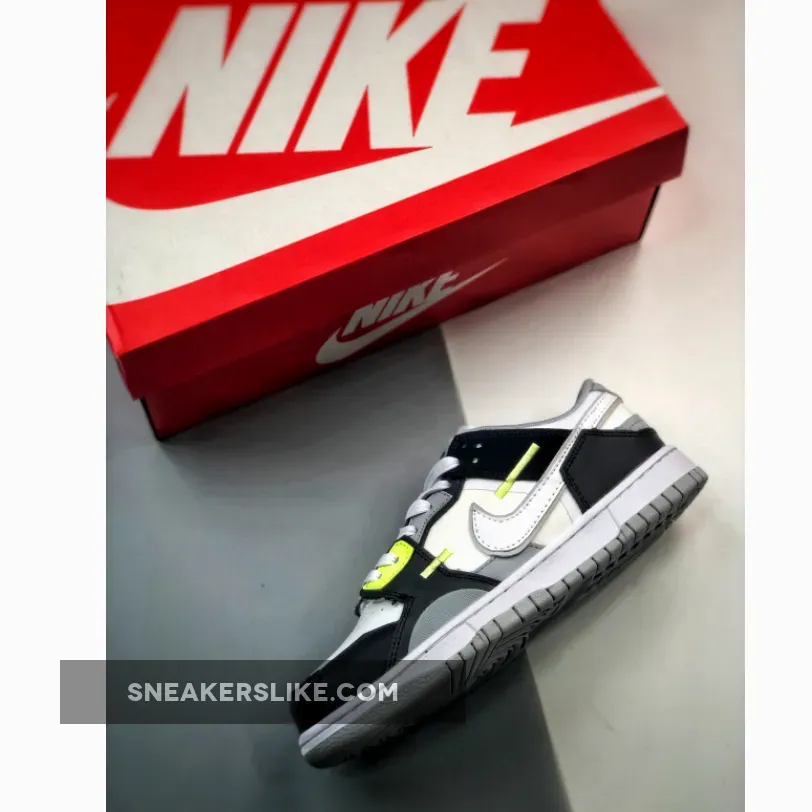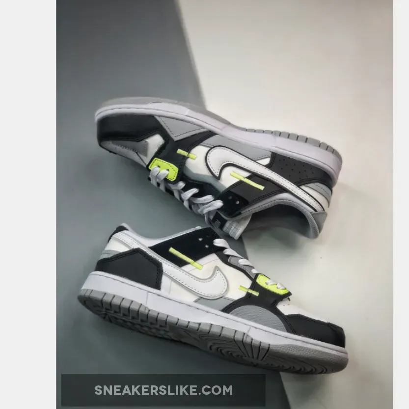 The Nike Dunk Low Scrap has a new addition with a twist, the Nike Dunk Low Scrap Grey. The upper features a leather and mesh combination in black, white, and grey with a modern grid design on the tongue and quarter. But it’s not all that boring with splashes of Lemon Twist accents on the lower eyelets and on the embroidered detailing of the side panels.