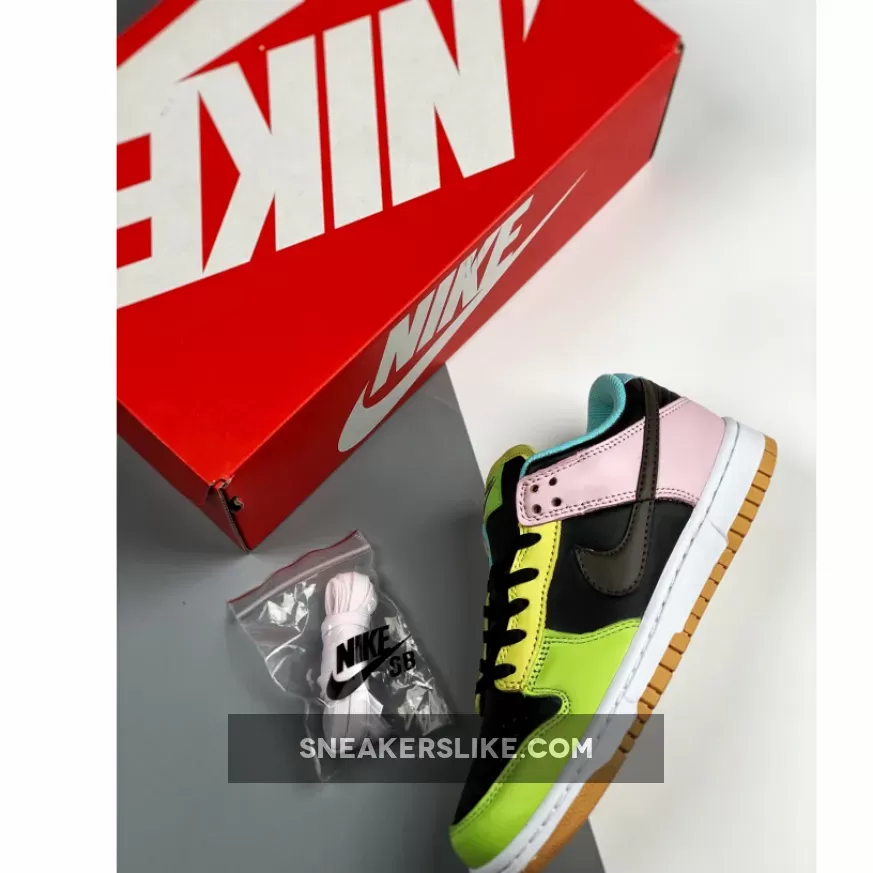 The Nike Dunk Low Free 99 Asymmetric Black Multi is the Swoosh team’s latest addition to their Dunk release line-up this year. The pair will be arriving in a low top silhouette flaunting a mismatching colour scheme for a playful touch. Official images of the sneakers are now live, and a closer look at its colorway instantly tells us why the hype levels on this might rocket up.The Nike Dunk shoe was introduced back in 1985 and remained a fan-favourite silhouette of many basketball players and skaters throughout the years. In the past year, the model acted as a blank canvas for high profile collaborations with global superstars such as American rapper Travis Scott and fashion designer Virgil Abloh.This brand new iteration flaunts a super smooth leather and buttery suede construction from heel to toe. Detailed images show a black base complemented with hues of green, yellow, pink, and teal overlays, and the left shoe boasting the same colours but arranged asymmetrically throughout for a mismatched look. To complete, traditional Nike features on the tongue, heel, and across the quarter panels.