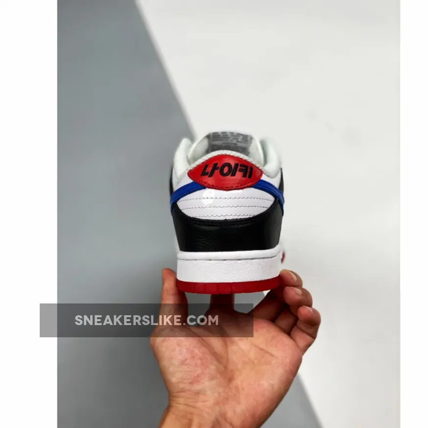 As you can see, this Nike Dunk Low features colors that are taken from the Korean flag, which also lands on the left tongue. Next, White leather lands on the base while Black adorns the overlays. We then have mismatch Red and Blue Swoosh logos along with a translucent outsole.
