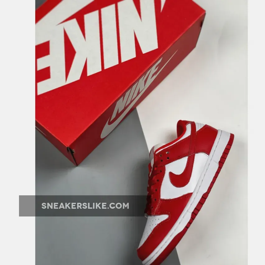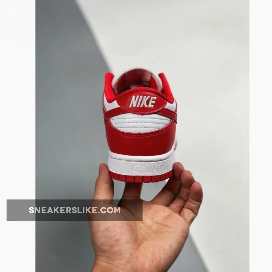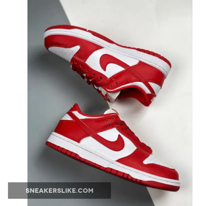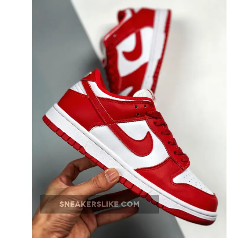 One of the pairs that will be releasing is this upcoming offering dressed in a White and University Red color scheme. This Nike Dunk Low looks similar to 2005’s “St.