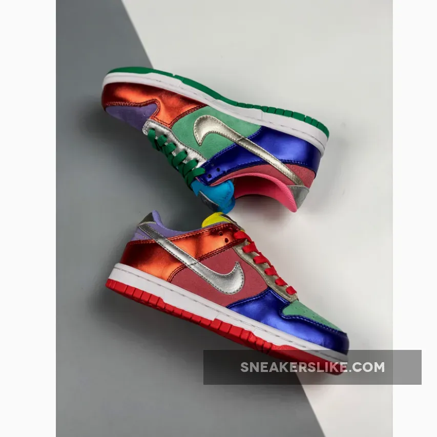 If you think the hype around the Swoosh brand’s iconic Dunk silhouette is starting to fade away, then think again because the sportswear giant has a stream of colourways ready to be rolled out to the masses. The latest we’ve got on our hands is the Nike Dunk Low Metallic Mismatch Multi, so read on for a closer look.This new Dunk Low variant sees a dual combo of materials throughout, suede underlays overlayed with metallic coated layers. Randomly arranged in various colours, the left and right shoe are done up in mismatching order for a significant look. The panels indulge in hues of gold, silver, red, purple, green, pink, blue, and yellow, altogether giving off a playful look that is very similar to the Nike Dunk Low Easter and Free 99 iterations.The Nike Dunk Low Metallic Mismatch Multi is certainly a must-cop for us, and we have no reason to believe why it shouldn’t be yours. Don’t forget to use our Nike Dunk size guide so you know how they fit and keep it locked in right here at Our Store Supplier for all the latest Nike release dates, news, teasers, and much more.