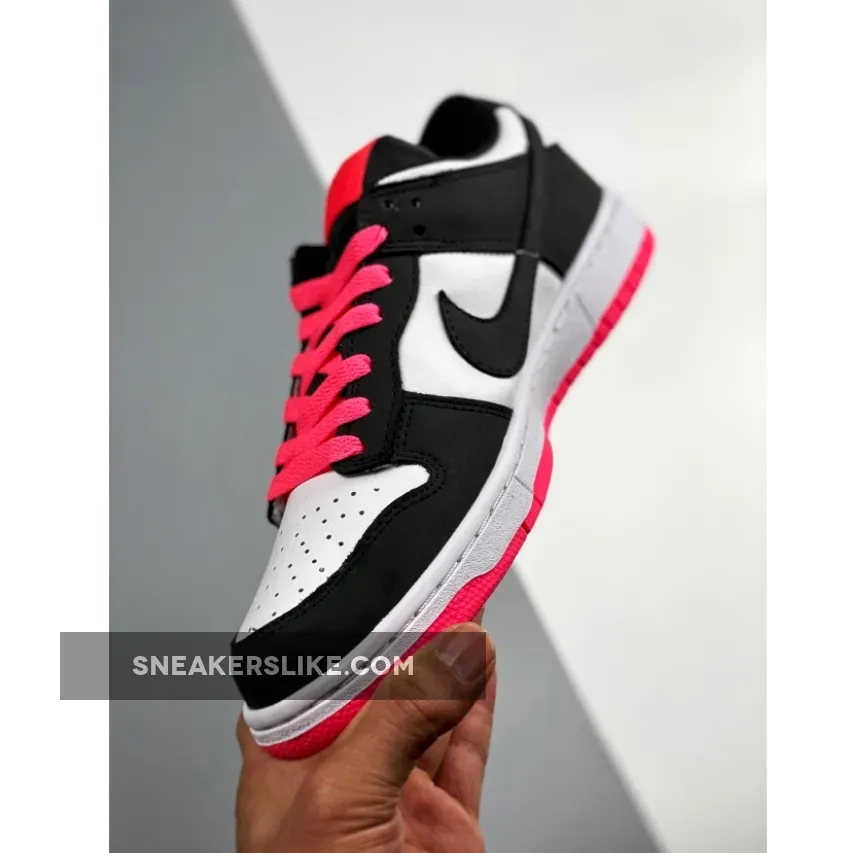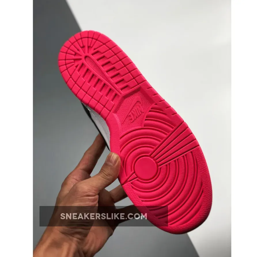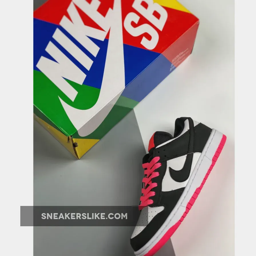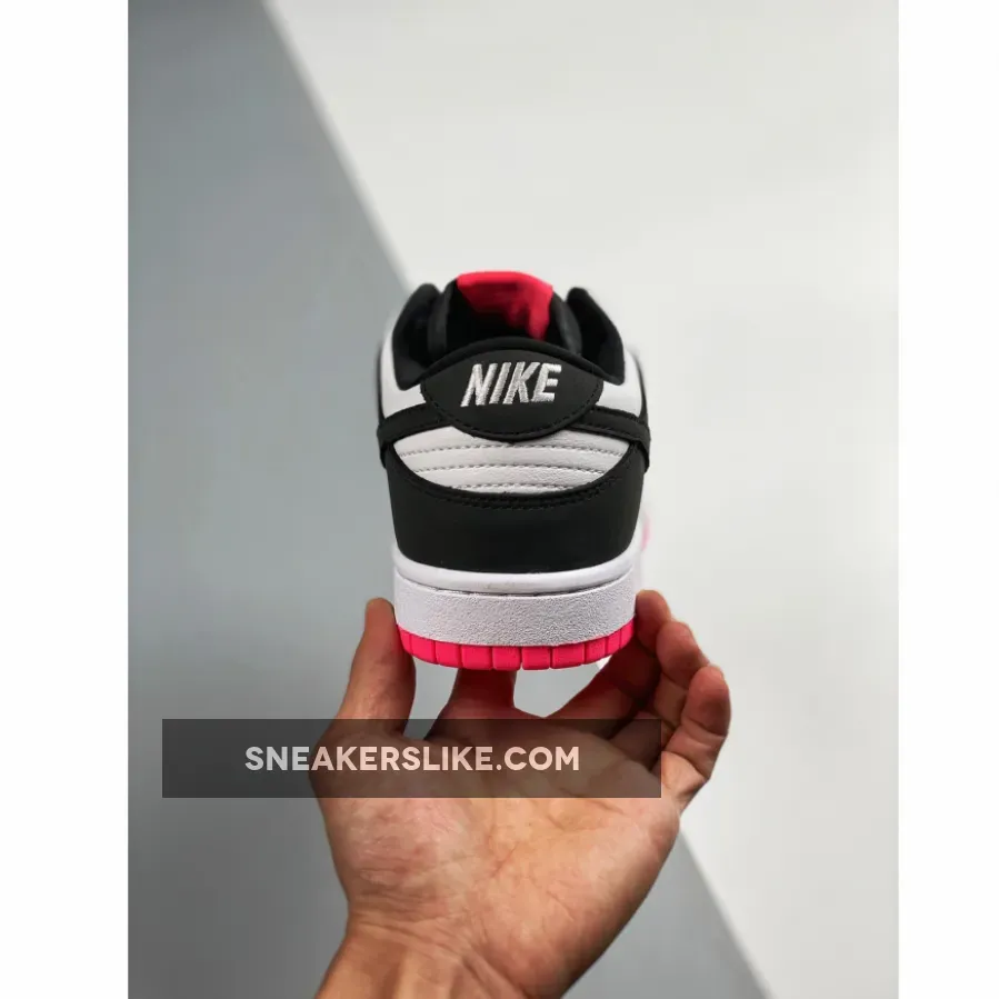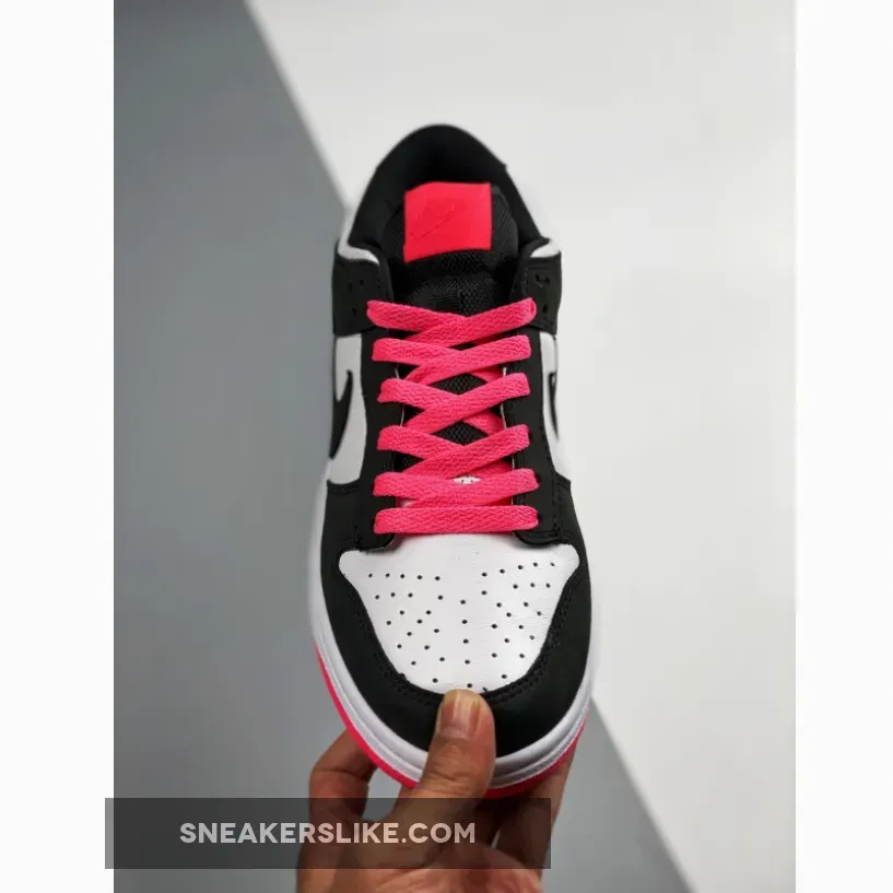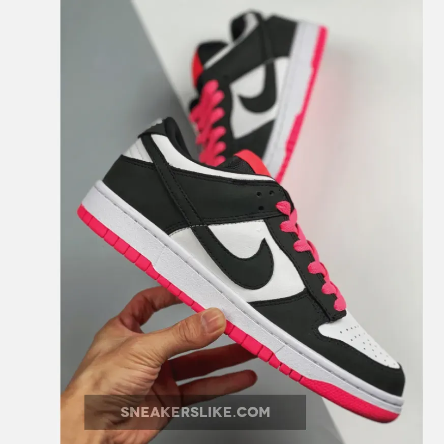 What starts as a simple black-on-white look turns out to be anything but boring, thanks to pink hits on the tongue, laces and outsole.