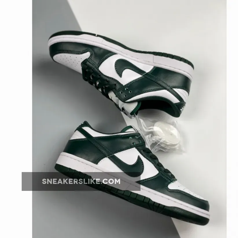 The Nike Dunk is undeniably the Swoosh brand’s best selling silhouette right now, and the all-new Nike Dunk Low White Green is the latest rendition of the classic sneaker that you’ll find very hard to resist. Madly loved by basketball players, skaters, and sneakerheads since its introduction all the way back in 1985, this latest variant boasts a colourway that is effortless to style meaning they’ll go with absolutely anything and everything in your wardrobe.Official images of the pair flaunt green overlays on a white leather upper, together heaving resembling Virgil Abloh’s Off White x Nike Dunk Low Pine Green sneaker from 2019. Traditional features remain present on this Dunk, prominently the perforated toe box, Nike’s signature Swoosh logos on the lateral and medial side, and further branding details on the tongue and heel alike. don’t forget to use our official Dunk size guide so you know how they fit.