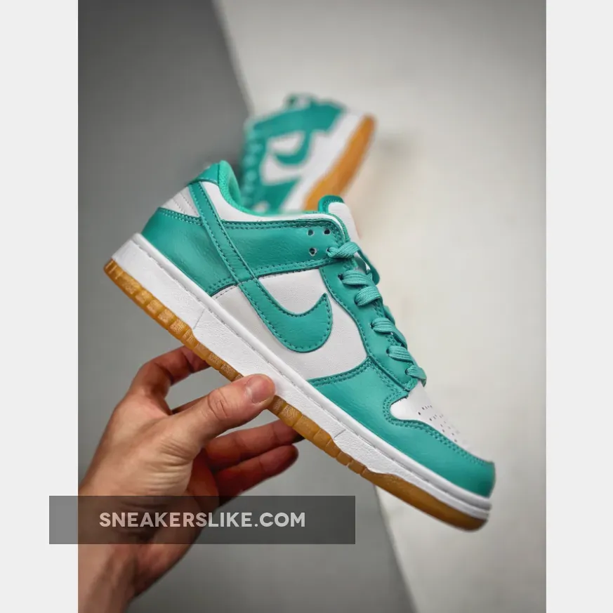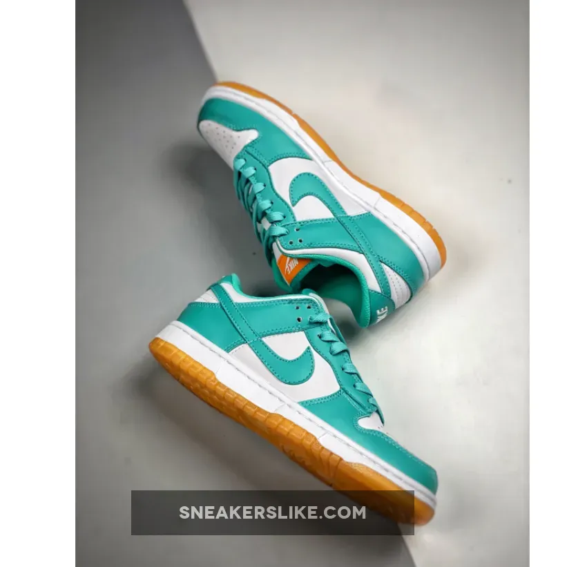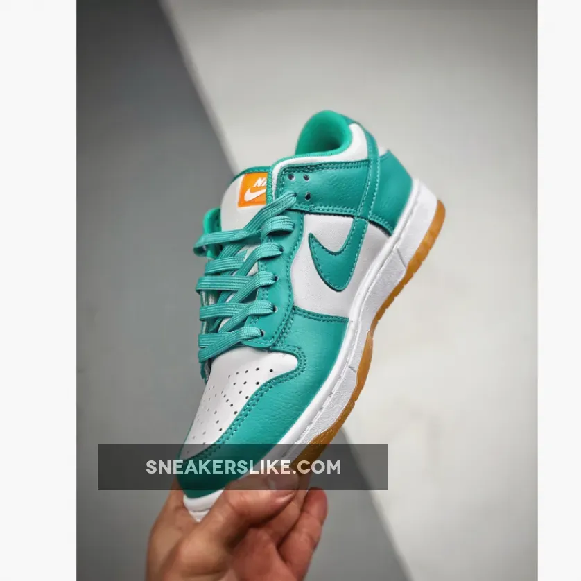 The Nike Dunk Low prepares for hotter weather with a splash of cool “Turquoise Green” and a dash of citrusy “Orange”. Check out the Nike Dunk Low Turquoise Green Orange.Calling to mind tropical scenes and beach vibes, this Dunk Low sports a clean white base overlaid with easy-on-the-eyes Turquoise Green tumbled leather, matching the laces, the mesh sockliner and the tongue lining. A lively pop of orange comes in the form of the tongue tab with white Nike branding. This pair is a perfect staple for your travel gear.