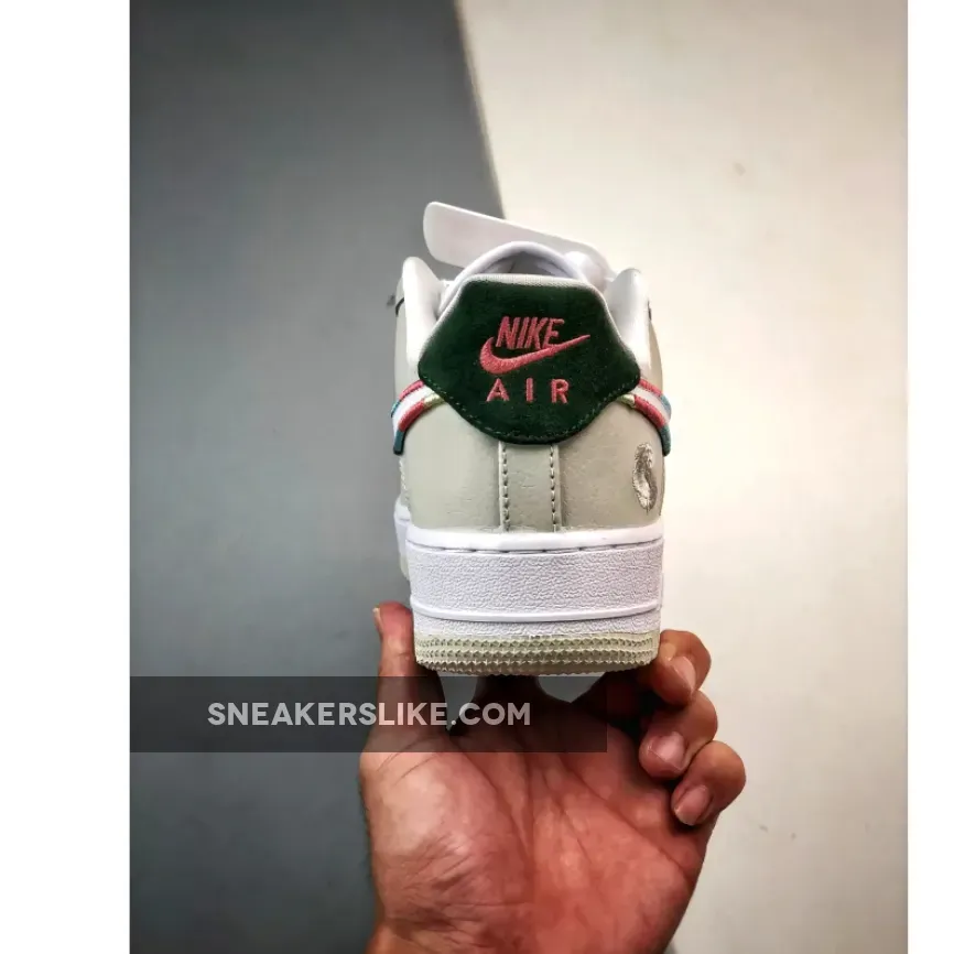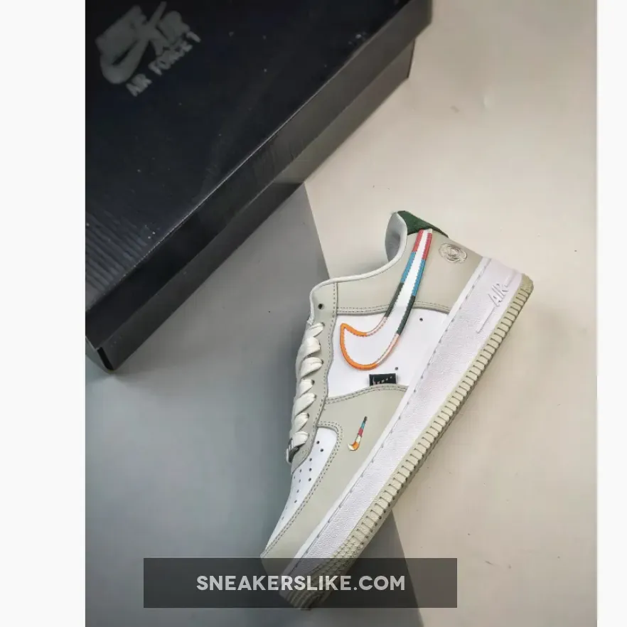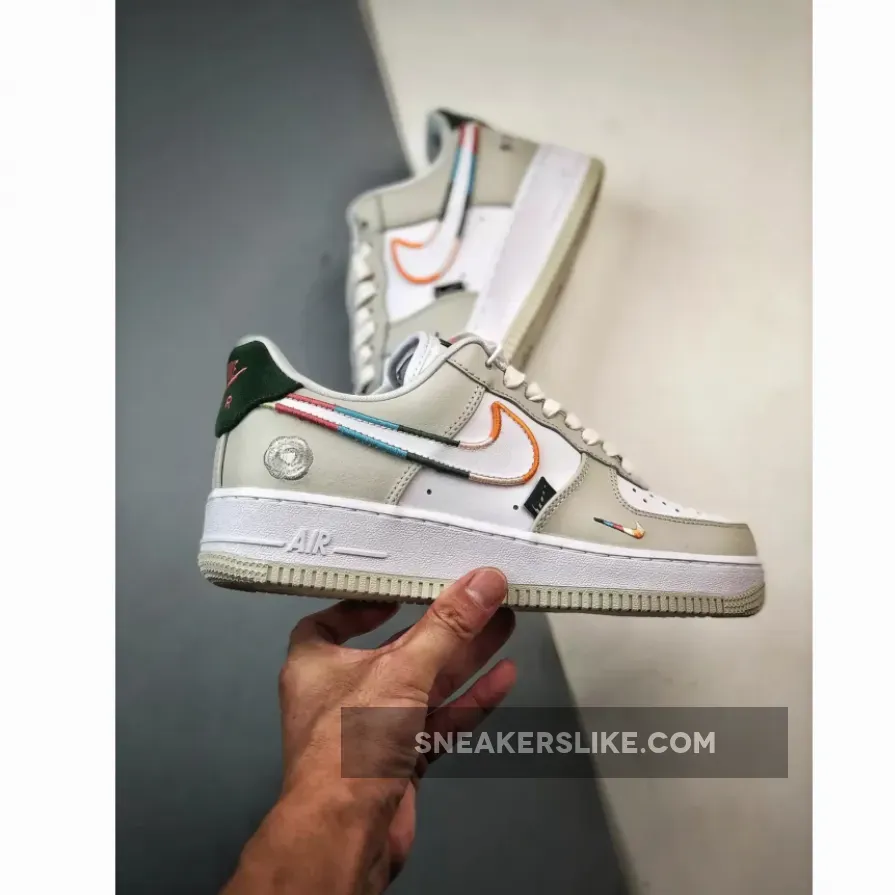 this Nike Air Force 1 Low comes constructed with leather throughout and mesh tongues. White runs across the base with Light Bone on the overlays. Highlighting the shoes, we have a mini 3D embroidered Swoosh on the sides that feature multiple colors, while the same treatment outlines the larger Swoosh on the panels. Next, a tonal embroidered flower adorns the lateral ankle, and a small rose lands on the tongues. Green suede covers the overlay, lateral labels, and ‘All Petals United’ on the insoles. Finishing the look is a two-tone rubber sole.