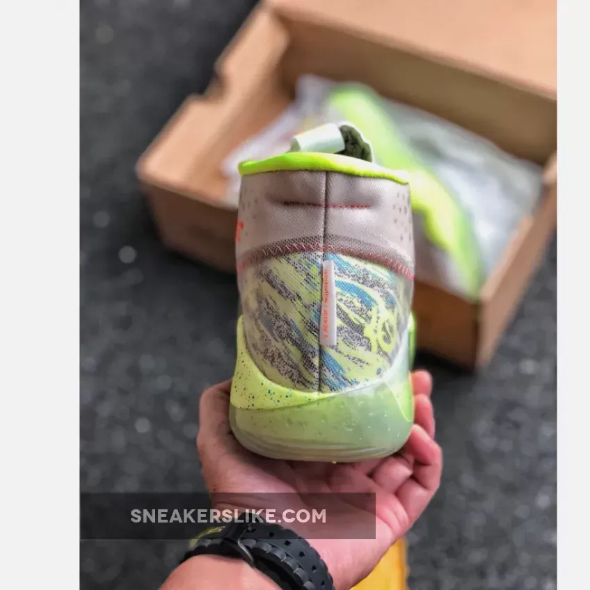 Born in what many believe to be the Golden Era of basketball, Kevin’s game is rooted in the vibrancy and brazen attitude of ‘90s hoop culture. From the moments, sneakers and players that elevated the game to the films, artists and music that have become the foundation of pop culture, the ‘90s have continued to transcend generations. Drawing inspiration from the Nike Air Command Force, made famous by one of the most iconic basketball movies of all time, “The 90’s Kid” celebrates the flare and statement of the decade with Nike’s latest performance innovation to intertwine the past, present and future of the game. Nike KD 12 “90s Kid” Color: Multi-Color/White Style Code: AR4229-900 Release Date: May 3, 2019 Price: $150