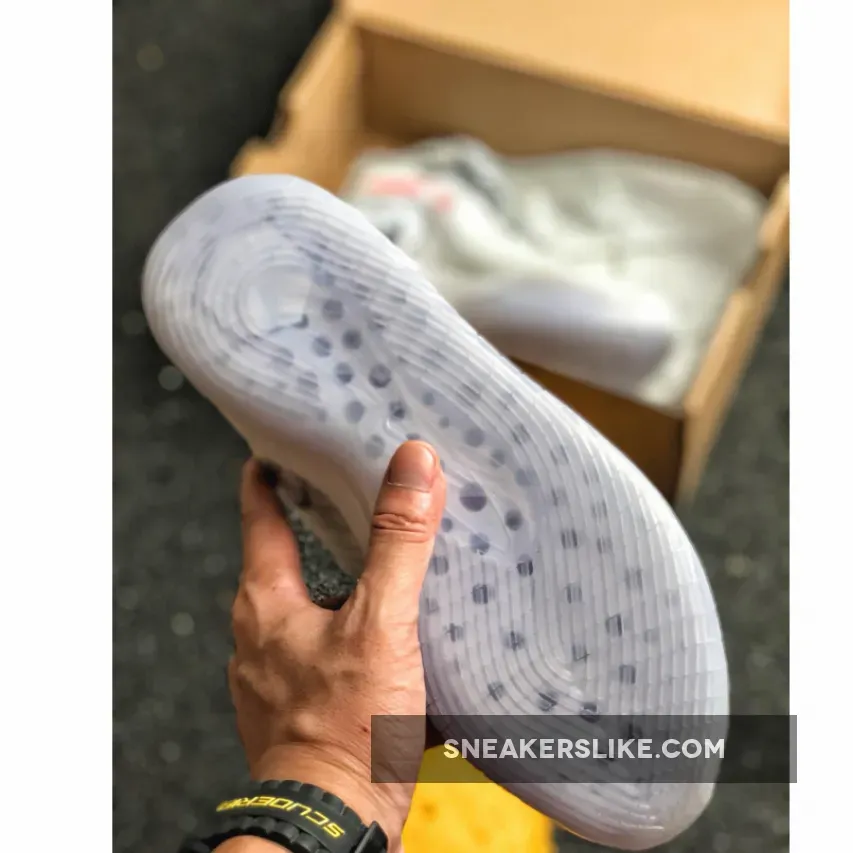 However it does have a sleek look and can be worn by you. This Nike KD 12 features a White, Black and Wolf Grey color combination. Featuring a transparent upper while multi-directional Flywire is used and Red text is placed on the medial side. Following we have White across the middle and an icy translucent outsole.