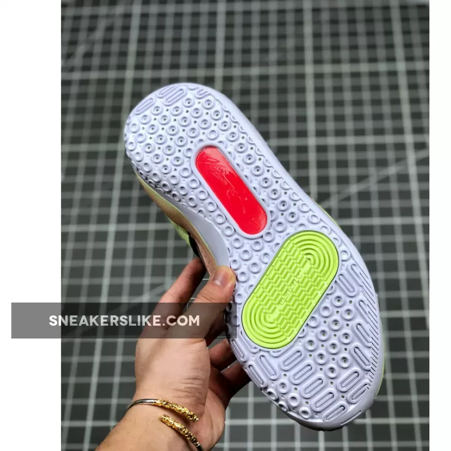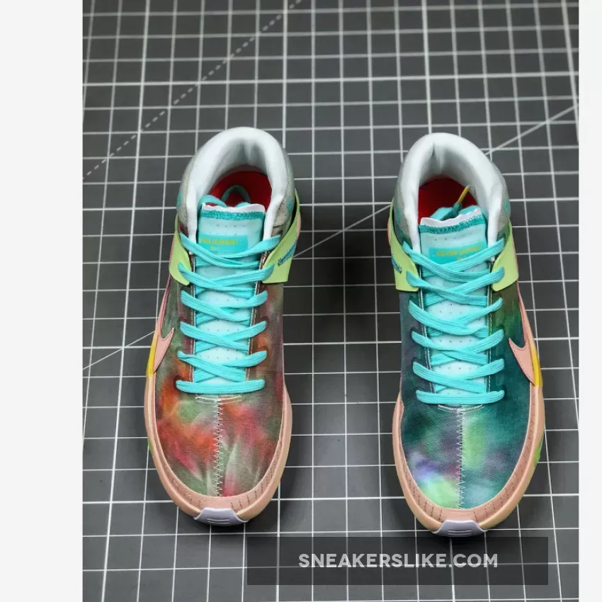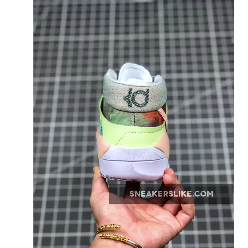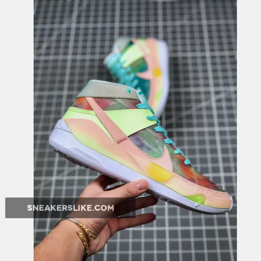 Creating a laid-back vibe that gets him locked in for the task ahead. This Nike KD 13 colorway features a color spectrum-based upper that’s inspired by his favorite R&B playlist.