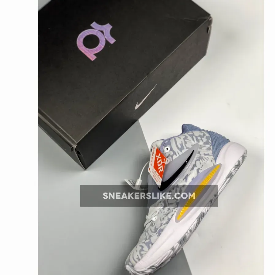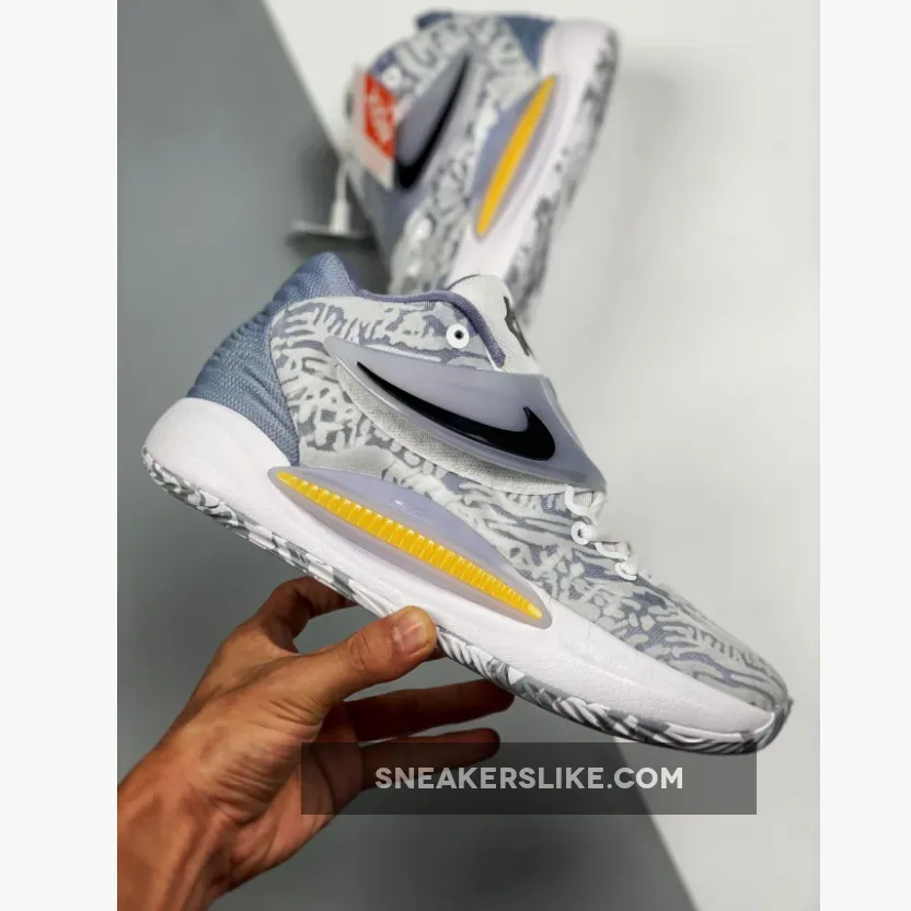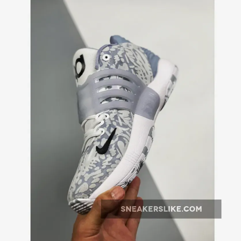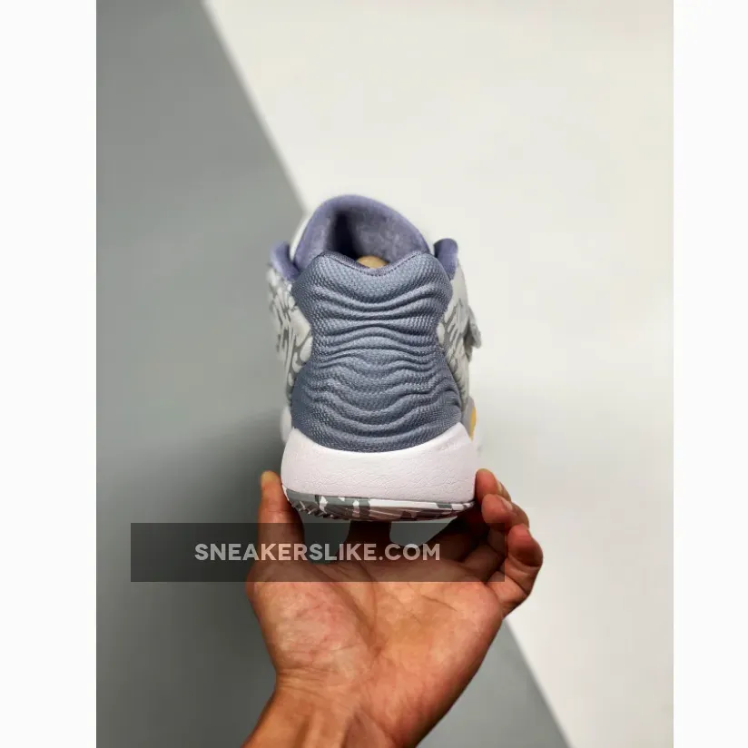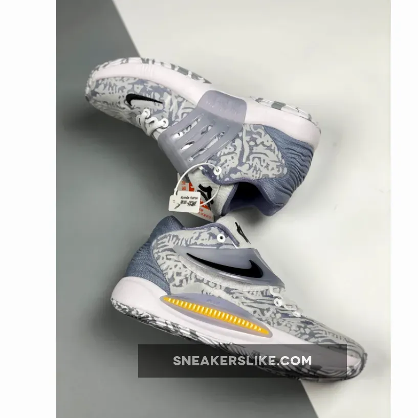 This offering of the Nike KD 14 features a clean White multilayer mesh upper paired with a translucent midfoot strap.