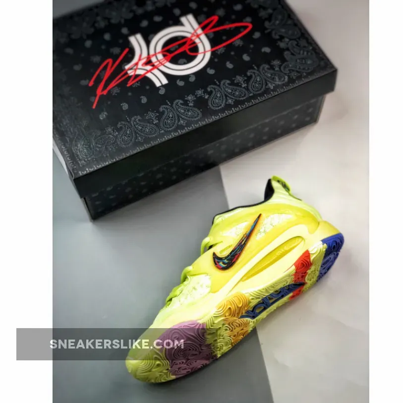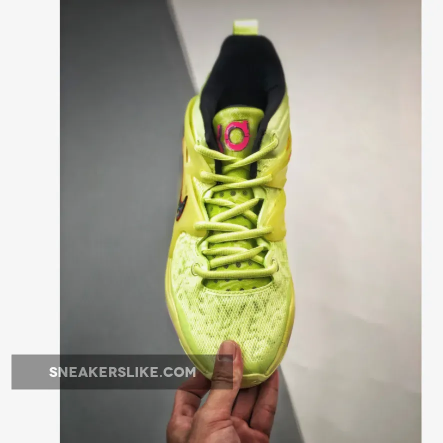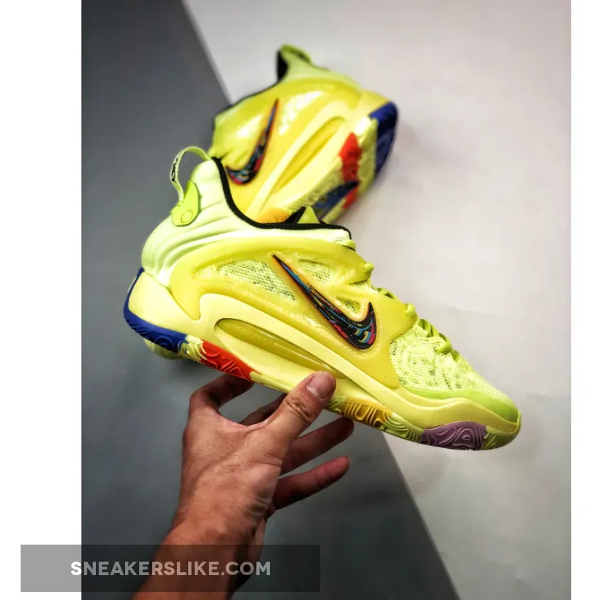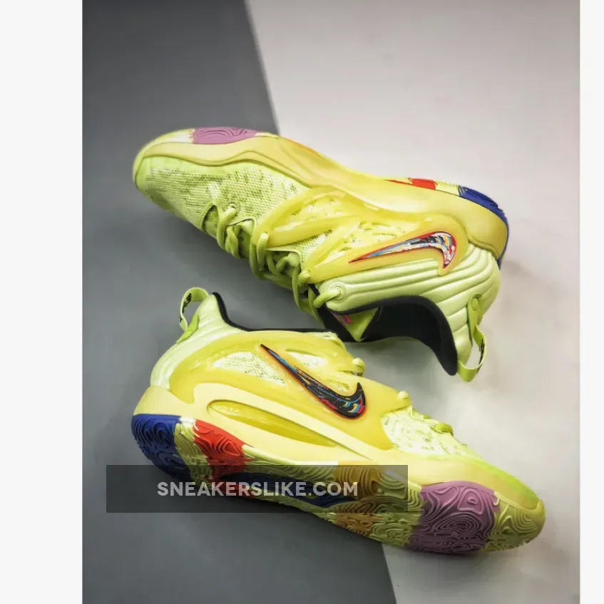 the all-new upcoming Nike KD 15 is now unveiled in an eye-catching “Light Lemon Twist” offering. The Nike KD 15 features a mesh construction on the upper with an external cage for lockdown support, full-length Zoom Air cushioning, and Cushlon foam. Swoosh branding on both side panels, the KD logo on the tongues, and Kevin’s #7 on the heels round out the main details. This colorway below gets covered in Light Lemon Twist all over the upper with a splatter of colors hitting the Swooshes, pink branding on the tongues, and black detailing on the inner liner.